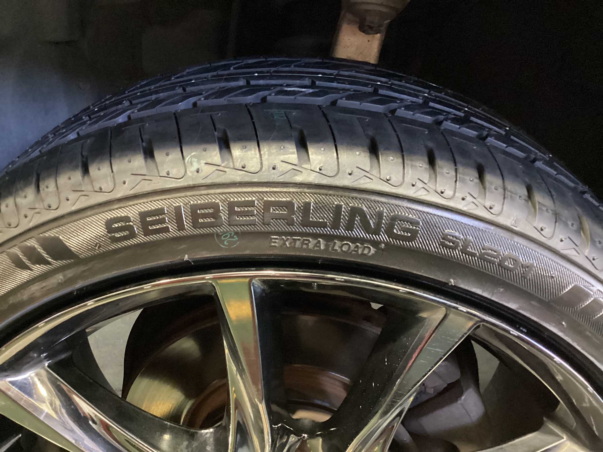 擦り減ったタイヤの交換作業です。交換前も後も同じタイヤ、「SEIBERING」のリピート購入をいただきました。