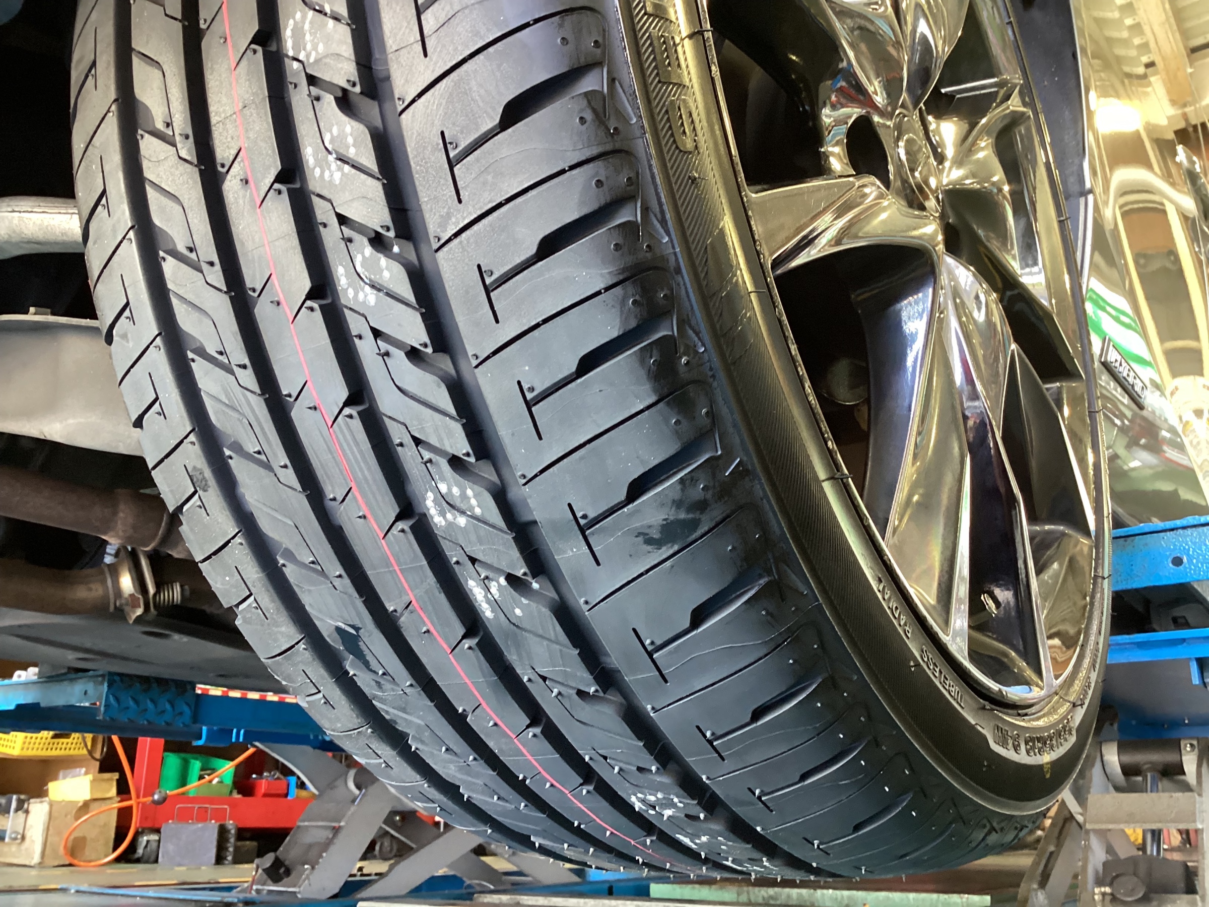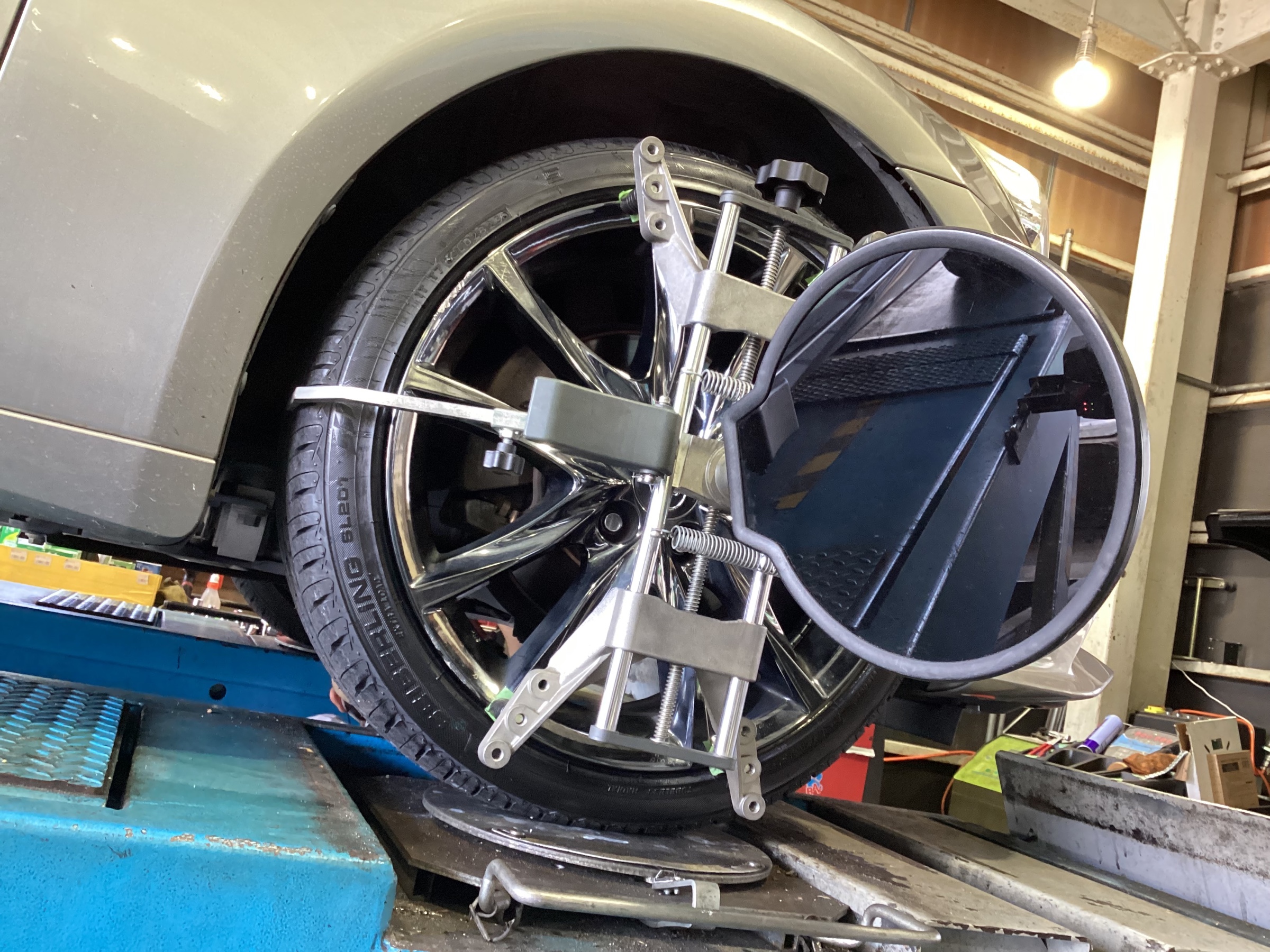 タイヤの寿命を延ばしたり、走行の安定さを向上させたりする作業:「アライメント調整作業」も同時に実施させていただきました。