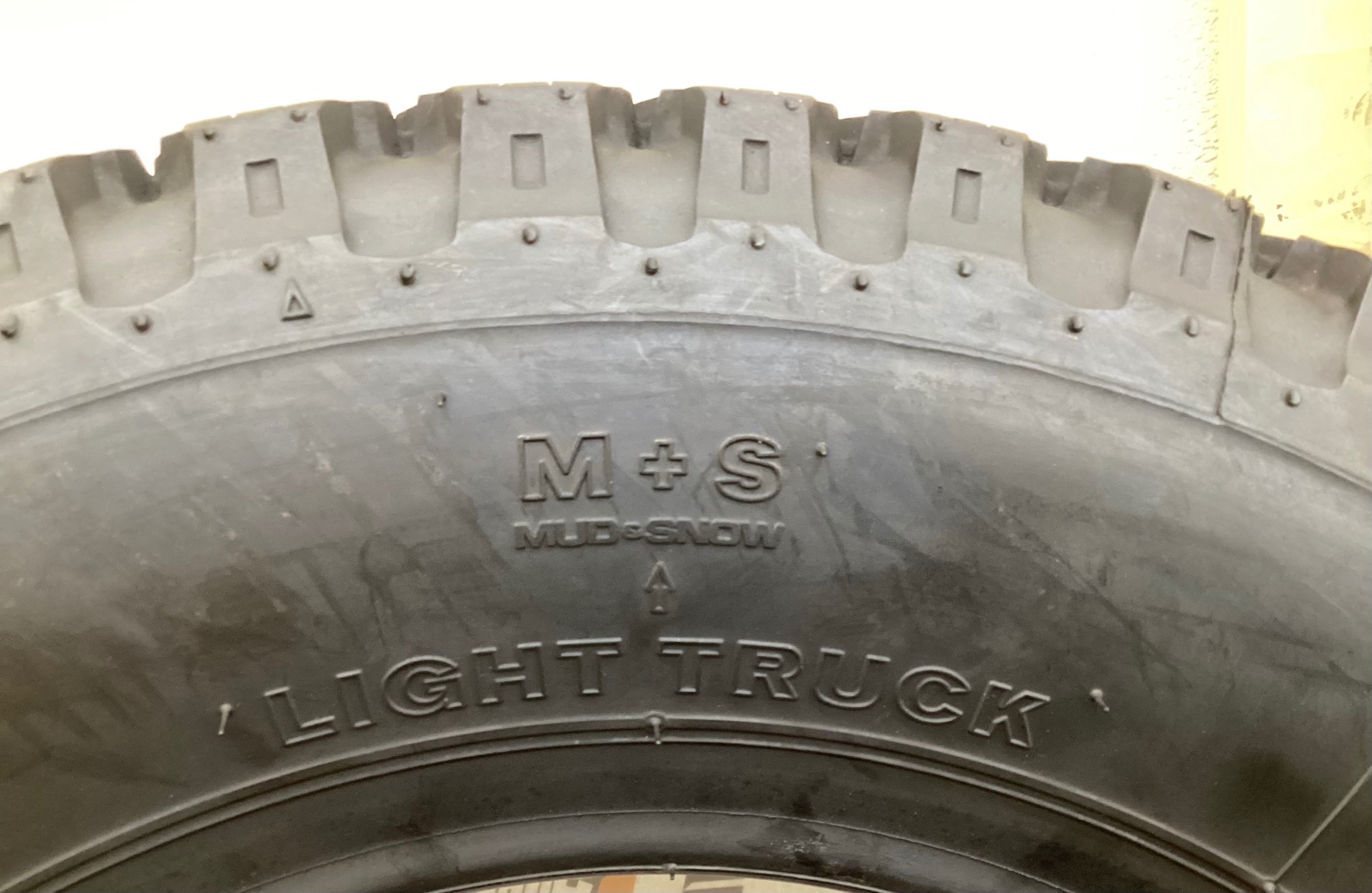 「M+S」=マッド&スノーの印。泥濘(ぬかる)んだ道や雪道でも走破できるような独特のタイヤパタン。