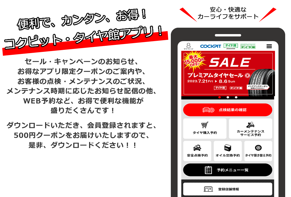 タイヤ館のアプリをまだダウンロードしていないみなさま、この機会にインストールを!