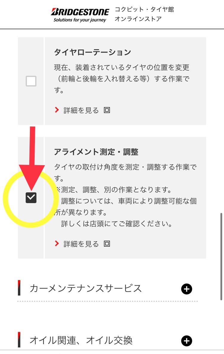 アライメント調整作業のWeb予約の方法