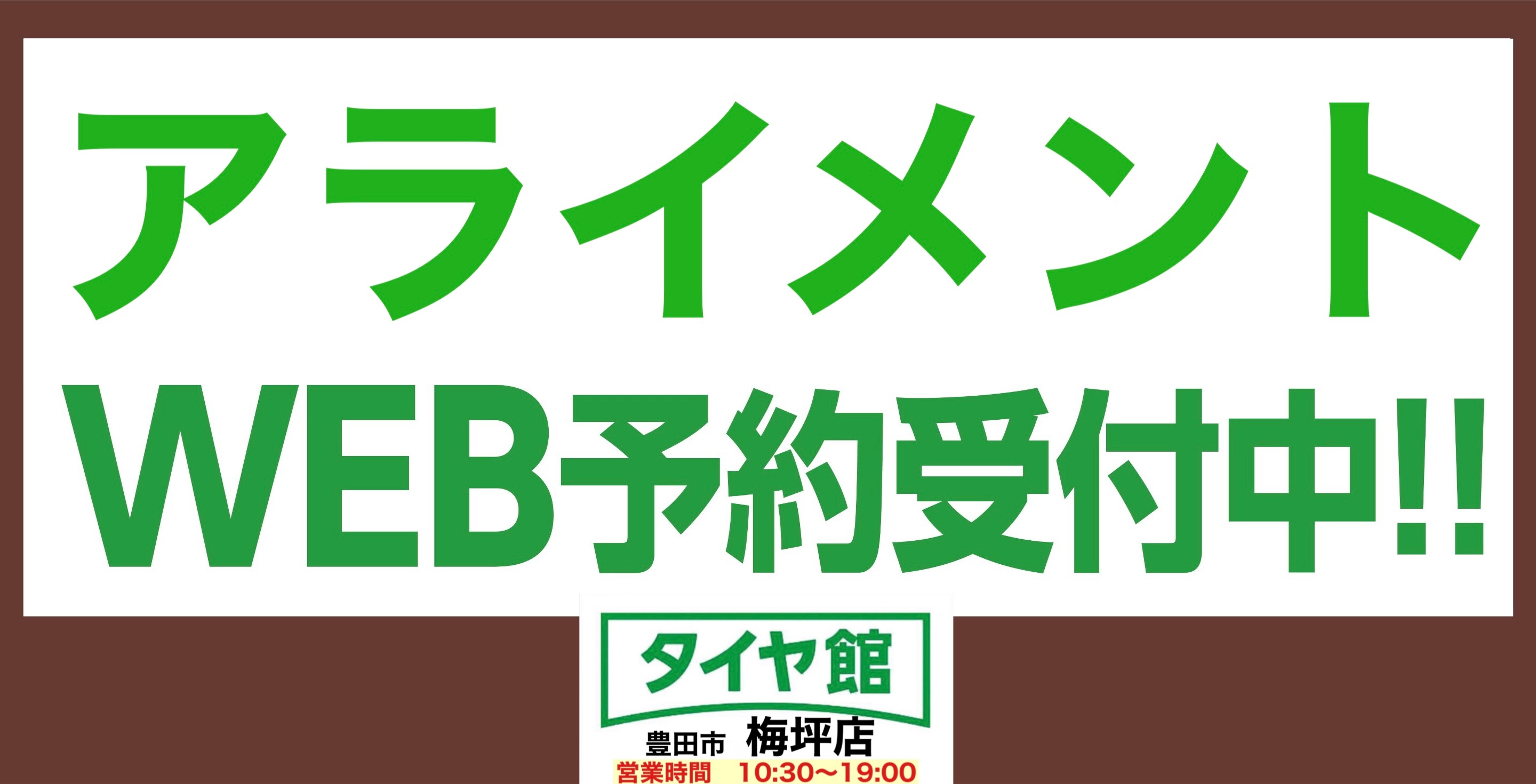 タイヤ館梅坪店のアライメント調整作業はホームページから予約を入れることができます。ぜひご活用ください。