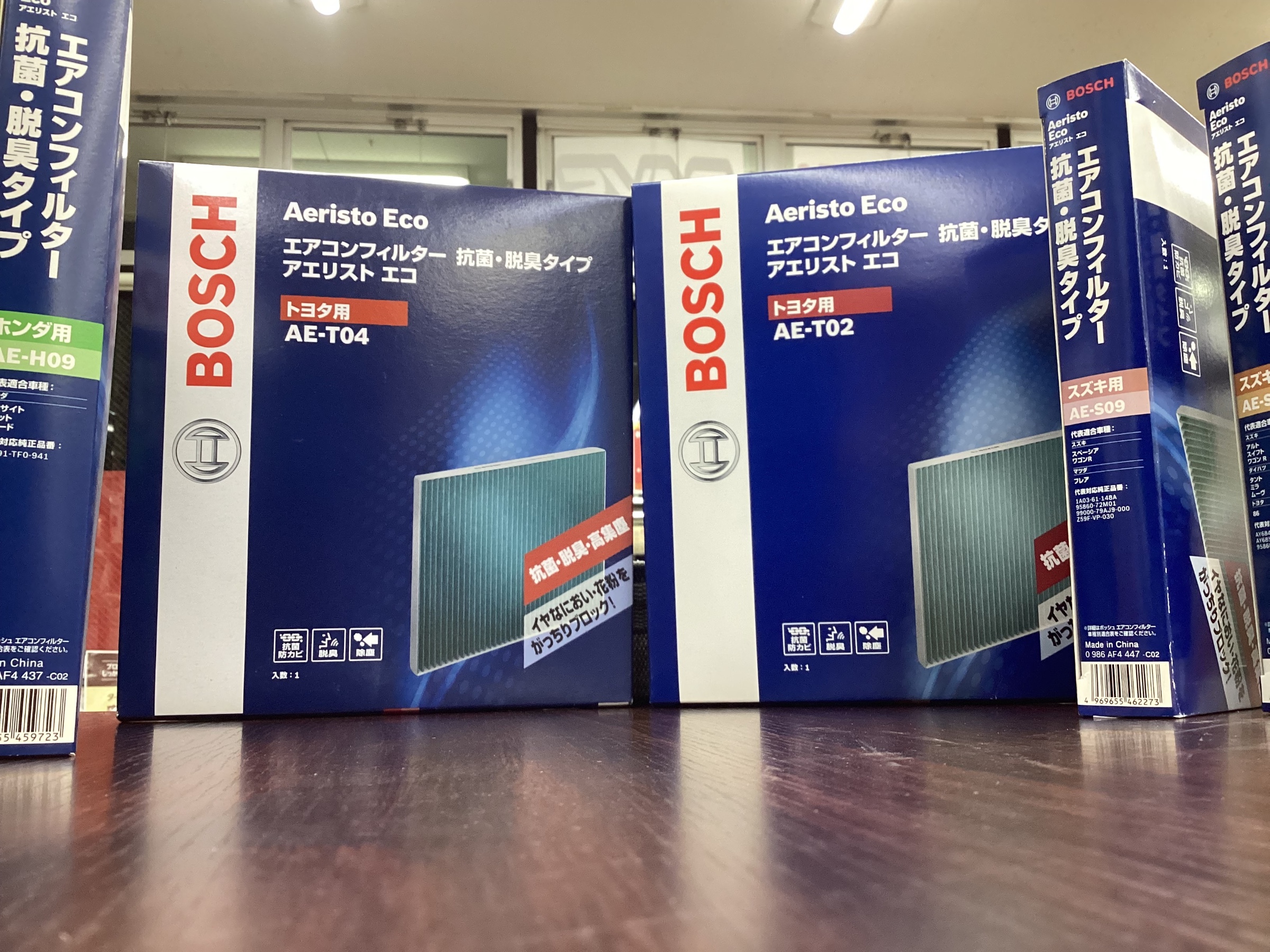 タイヤ館梅坪店にはトヨタ車を中心に主要車種のエアコンフィルターを常備しています。(メーカーは、BOSCH、または、PIAA)
