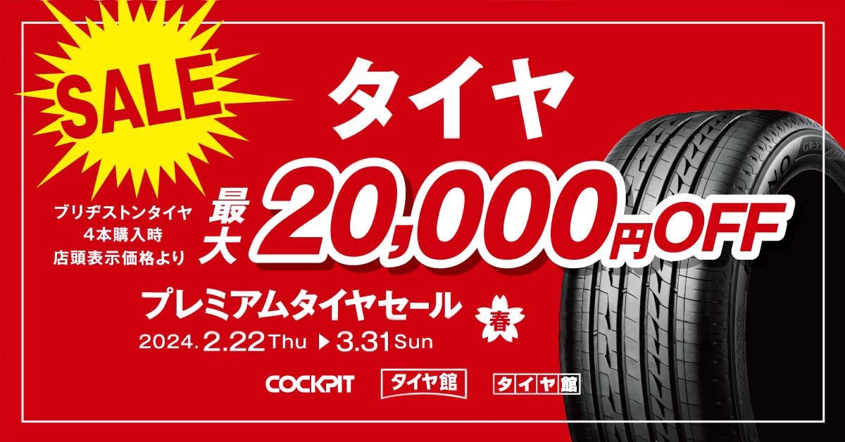 【ブリヂストンタイヤが4本最大20,000円引き】セール開催中!
