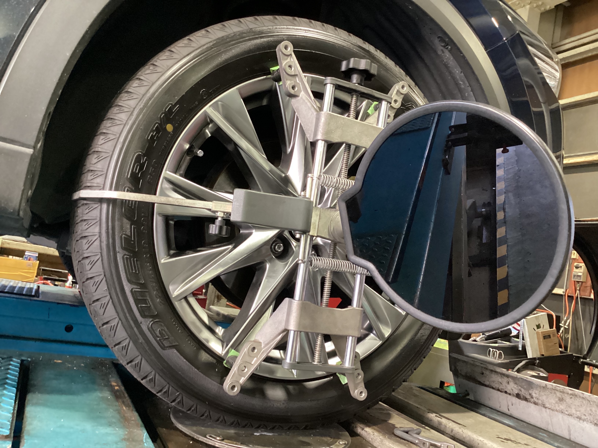 タイヤの寿命を延ばしたり、走行の安定さを向上させたりする作業:「アライメント調整作業」も同時に実施させていただきました。