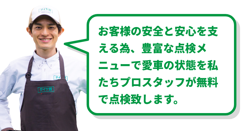 タイヤ館梅坪店では、上記の無料安全点検がWebで日時の予約が取れます。ご利用下さい。