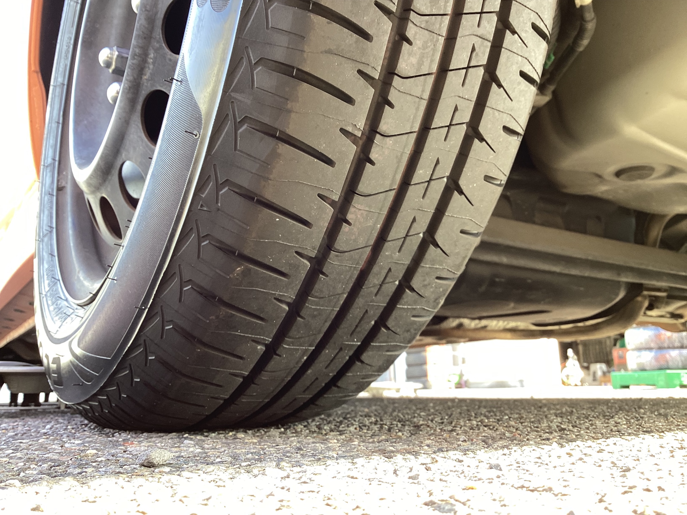 タイヤの寿命を延ばしたり、走行の安定さを向上させたりする作業:「アライメント調整作業」も同時に実施させていただきました。