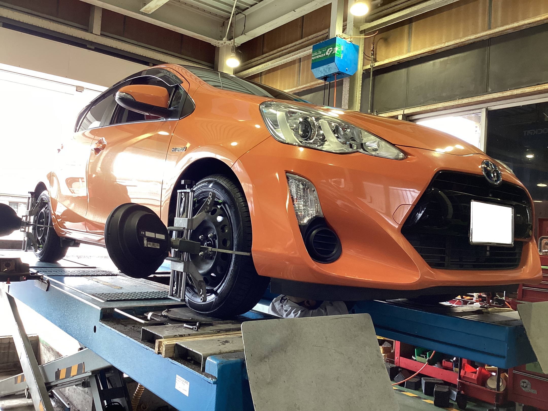 【トヨタ・アクア】夏用タイヤ交換作業(ブリヂストン ECOIPIA NH200C)・アライメント調整作業