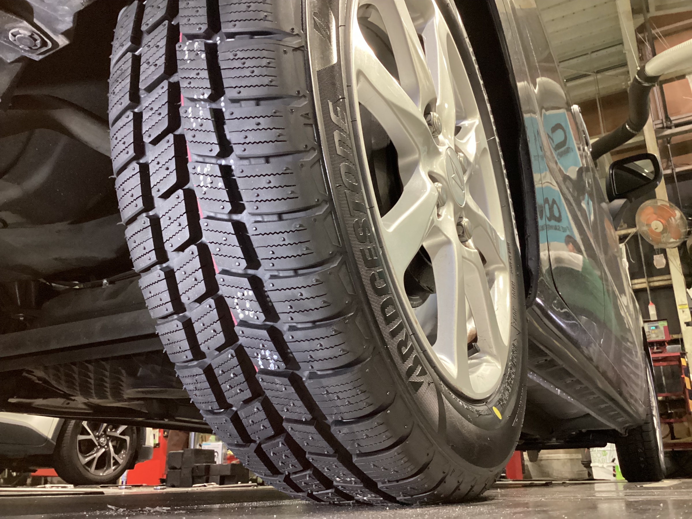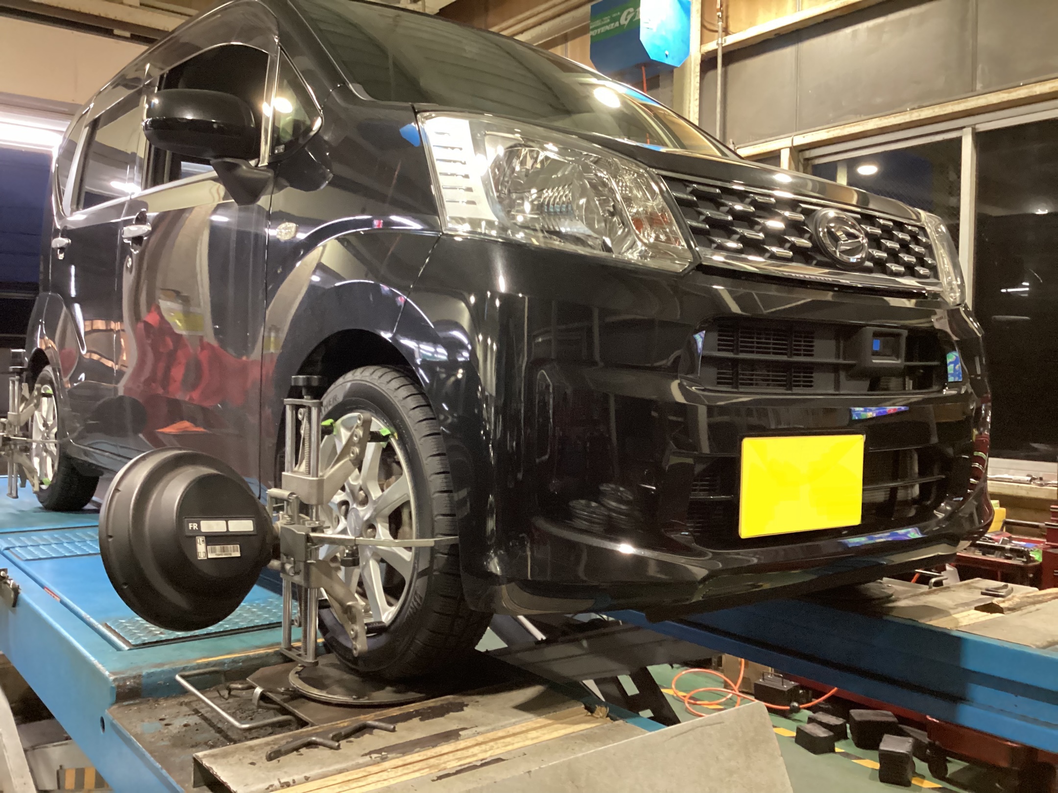 【ダイハツ・ムーヴ】オールシーズンタイヤ交換作業(ブリヂストン MULTI WEATHER)・アライメント調整作業