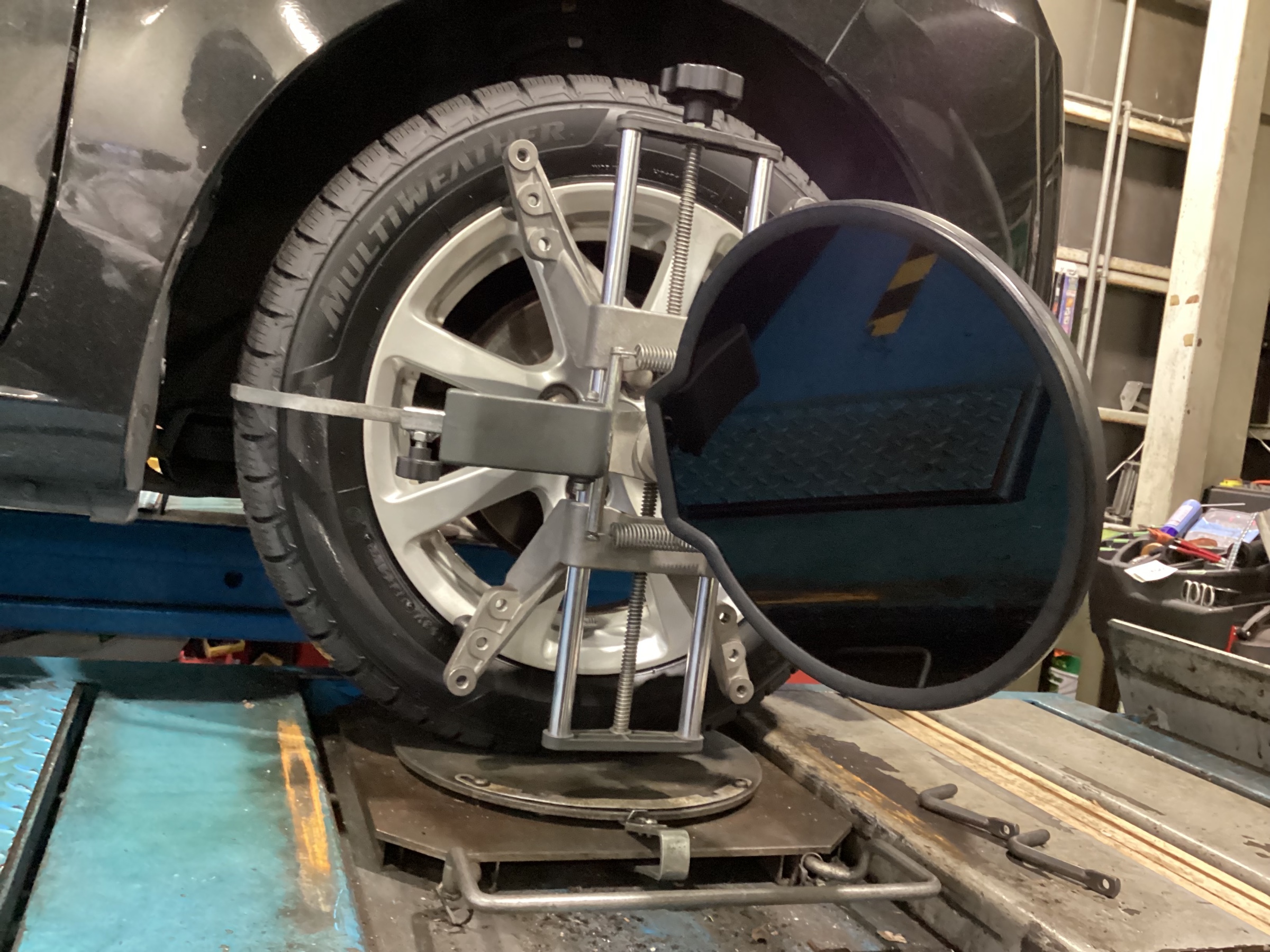 タイヤの寿命を延ばしたり、走行の安定さを向上させたりする作業:「アライメント調整作業」も同時に実施させていただきました。