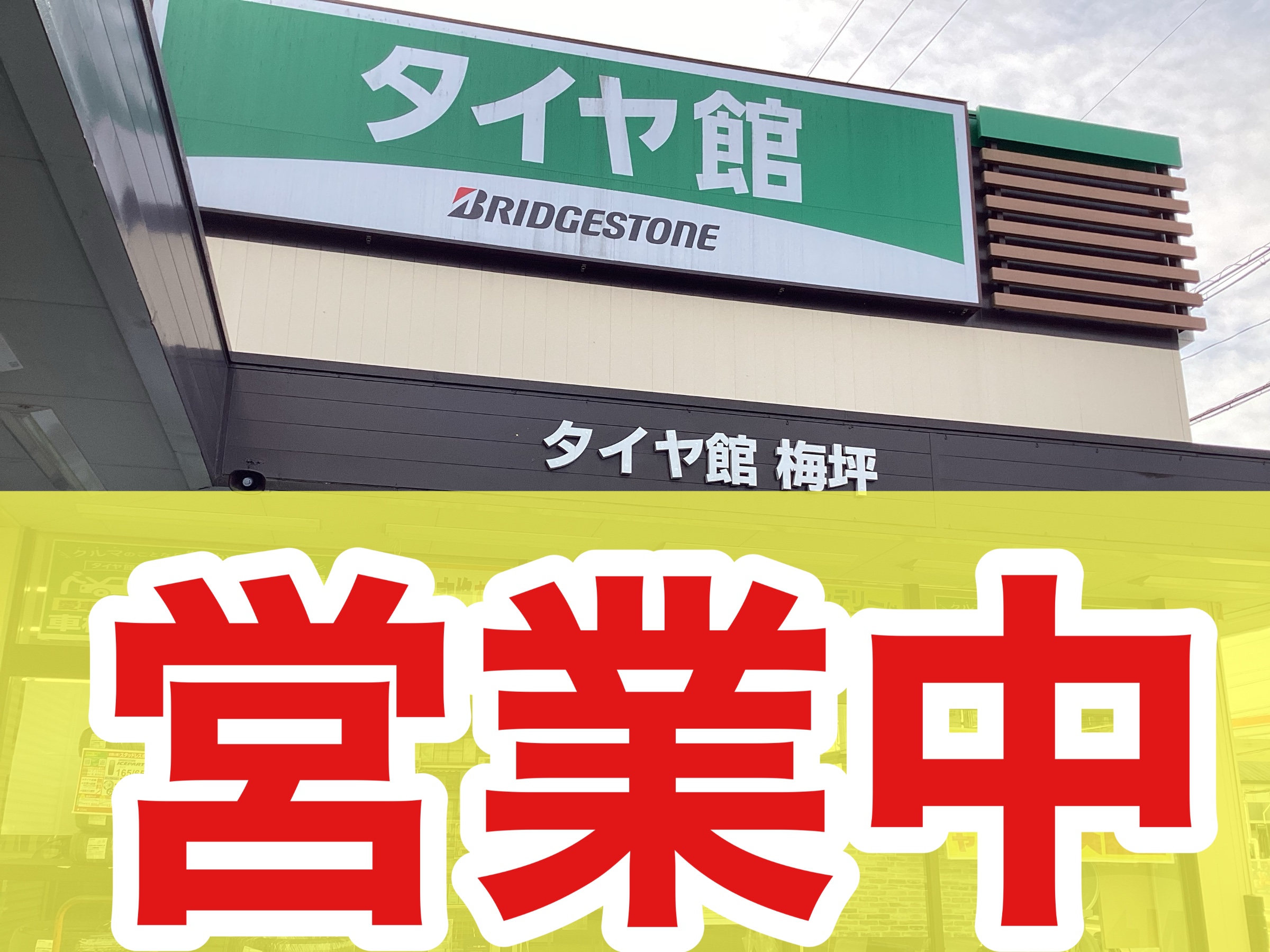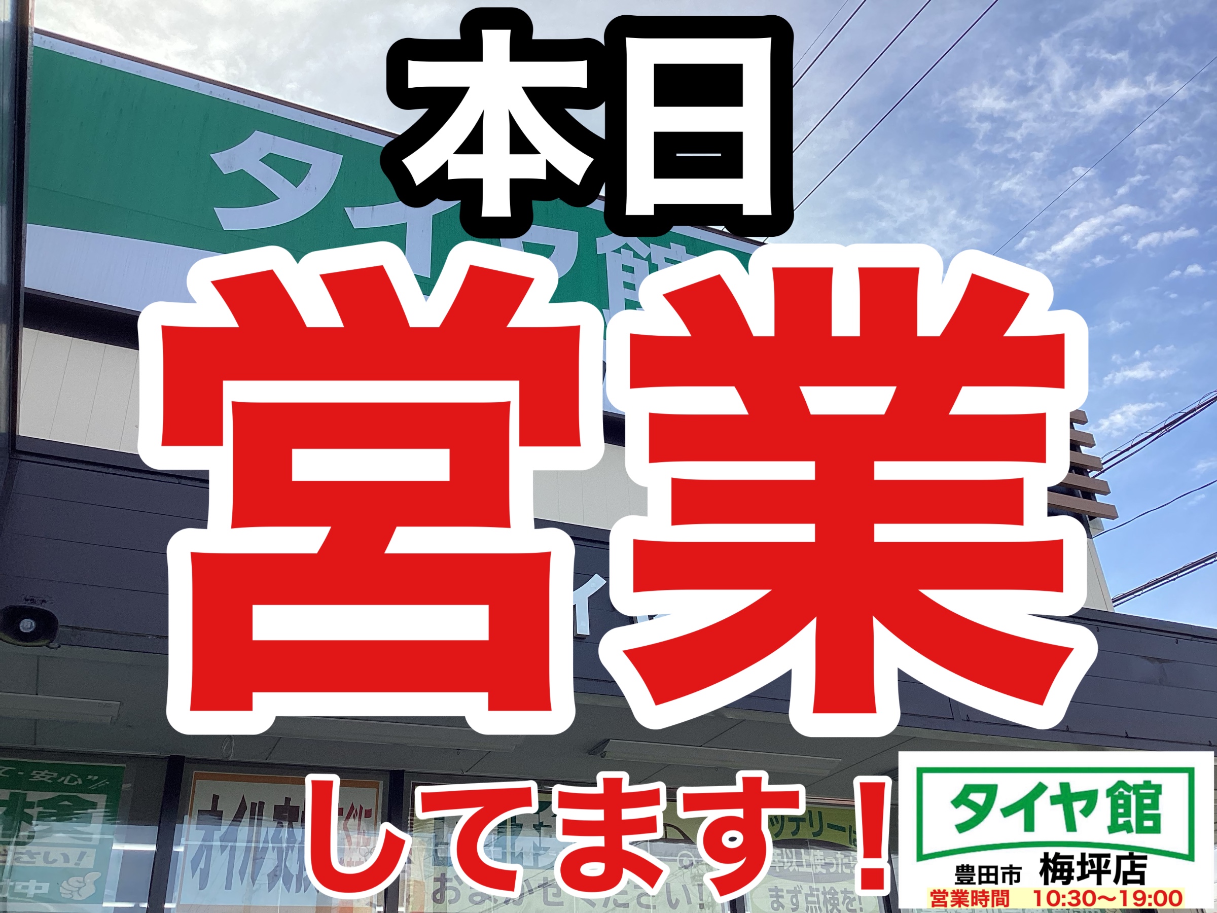本日、祝日ですが、タイヤ館梅坪店は通常営業しています。