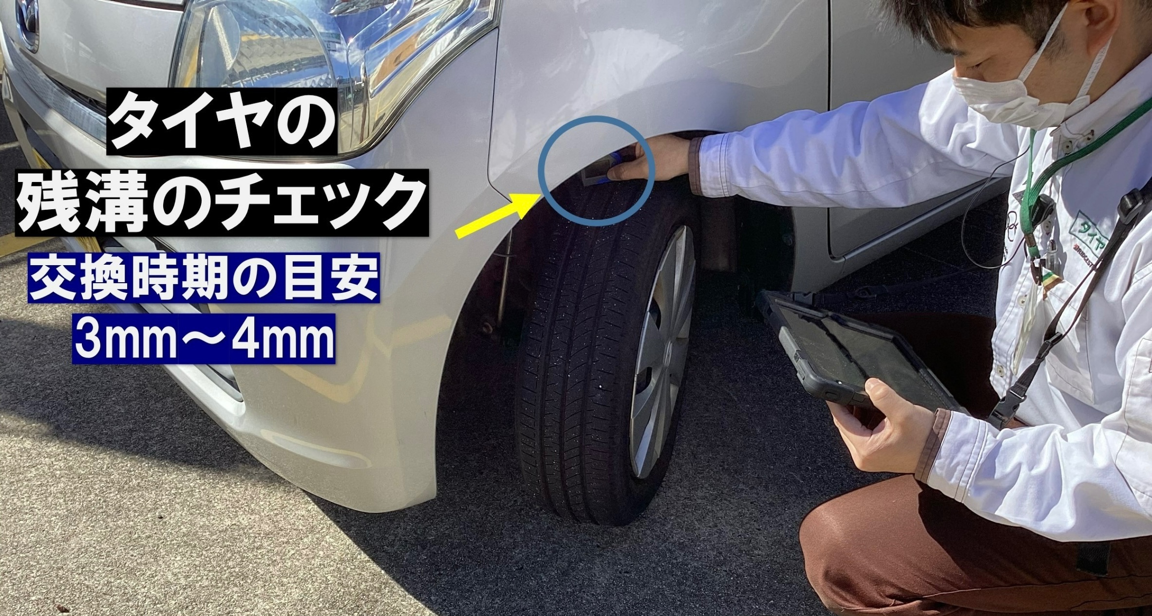 タイヤ館梅坪店では、タイヤ交換が必要なのかしっかりチェックします。