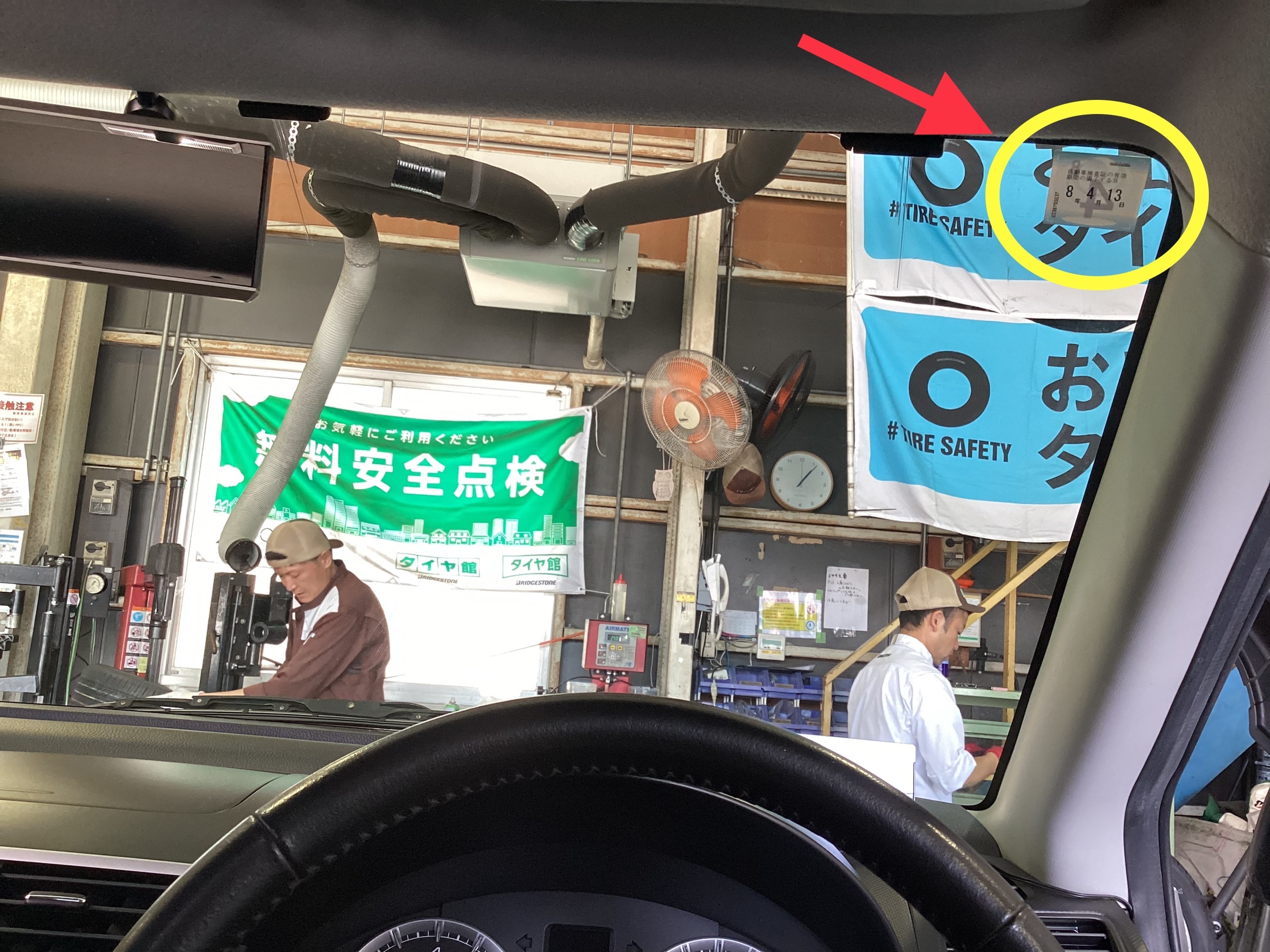 車検満了日はいつ?・・忘れてしまった場合、車検証の左側の「有効期間の満了する日」か、フロントガラスの上部に貼付されているステッカーで確認できます。