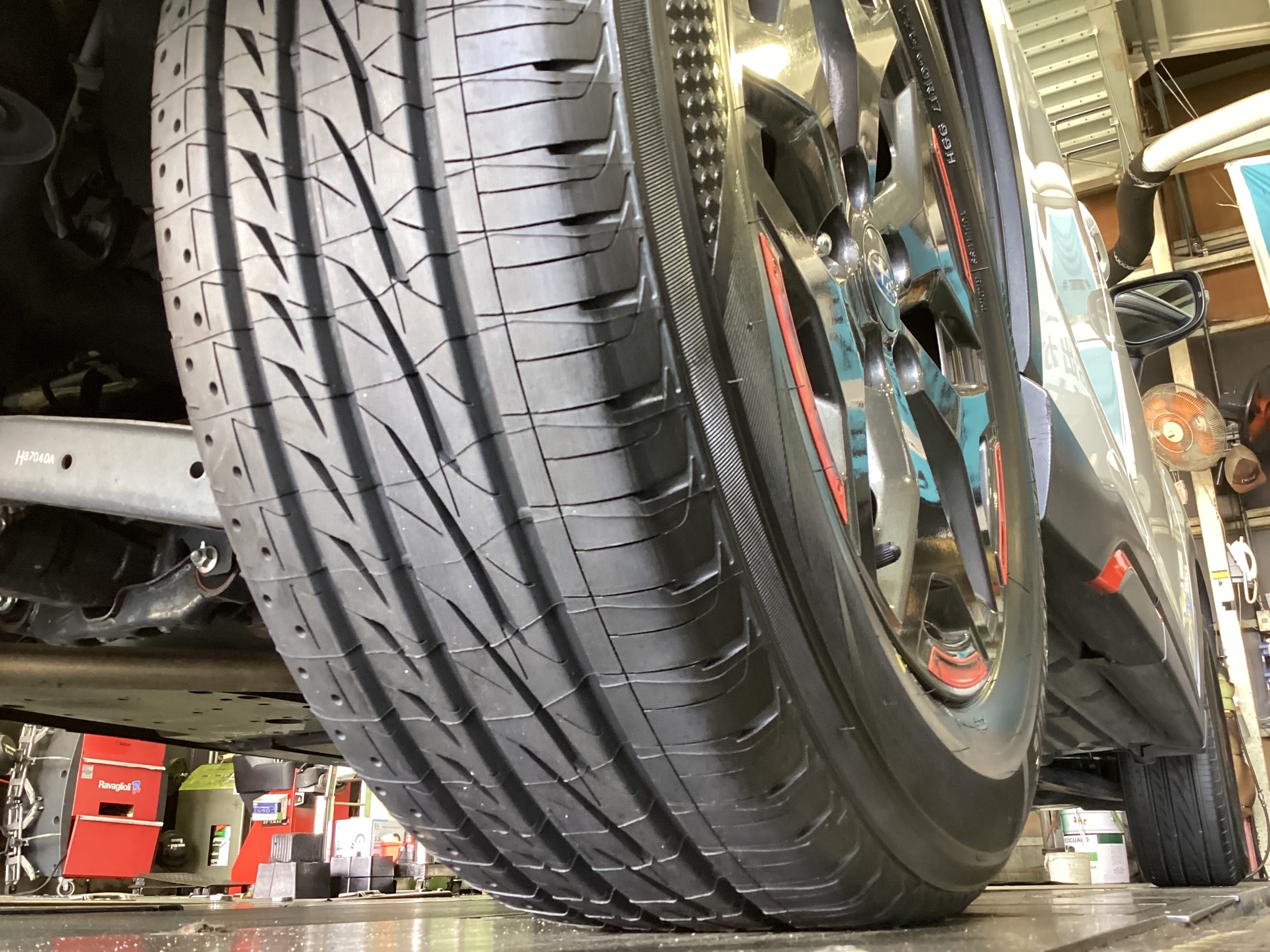 タイヤの寿命を延ばしたり、走行の安定さを向上させたりする作業:「アライメント調整作業」も同時に実施させていただきました。