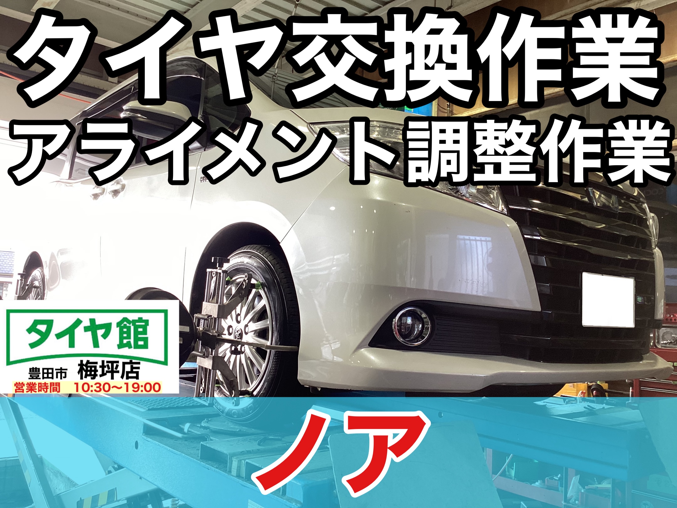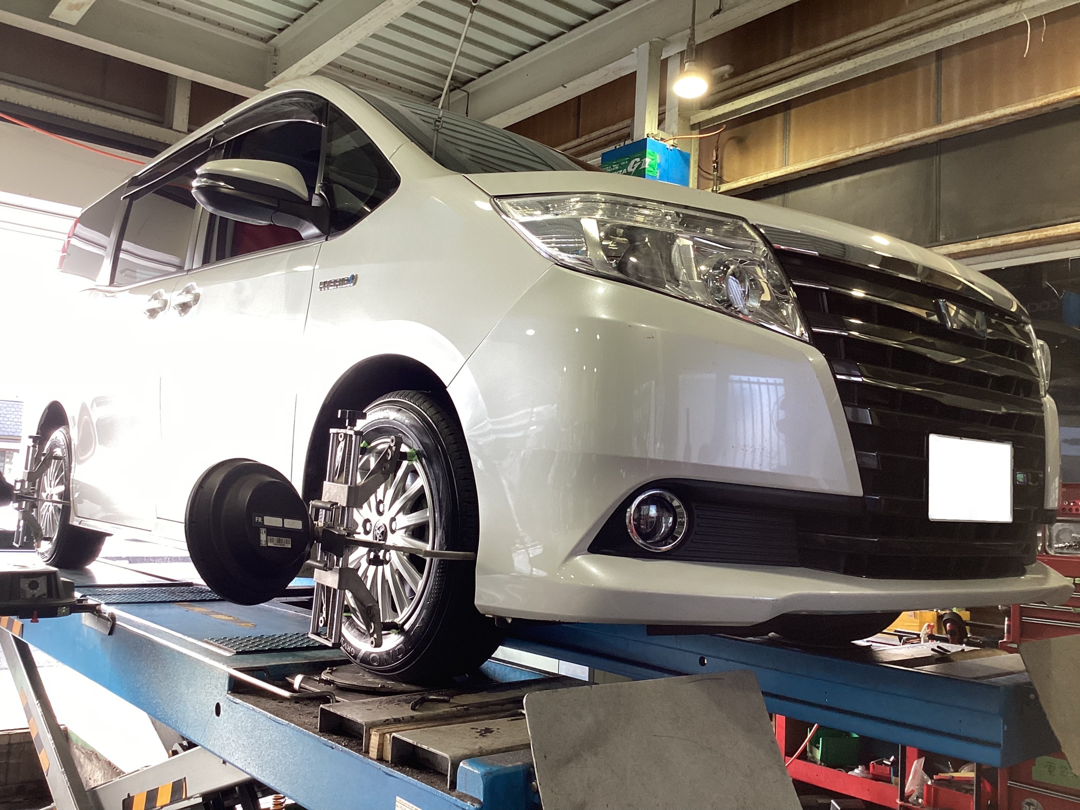 ノアのタイヤ交換作業&アライメント調整作業です。