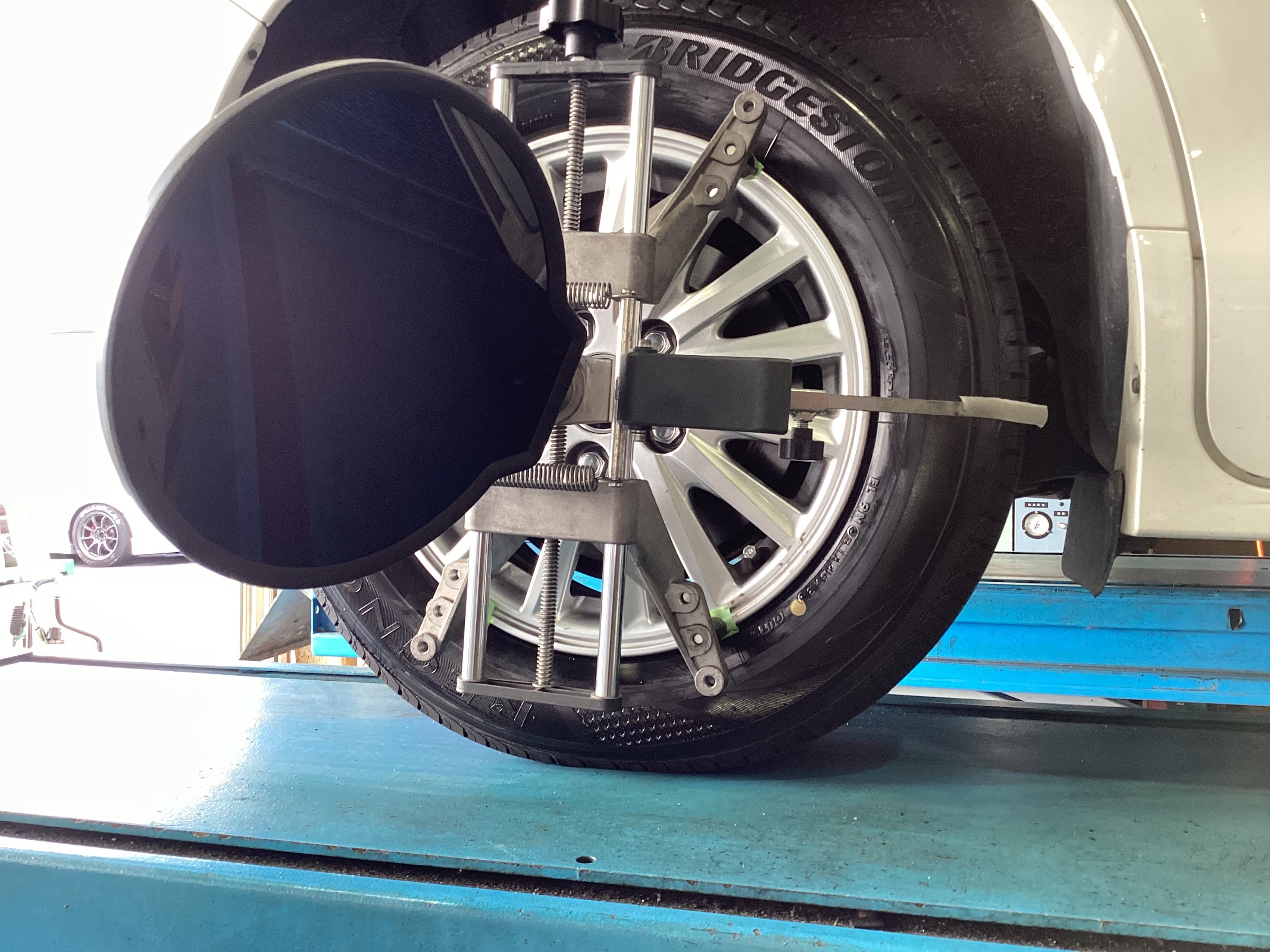 タイヤの寿命を延ばしたり、走行の安定さを向上させたりする作業:「アライメント調整作業」も同時に実施させていただきました。