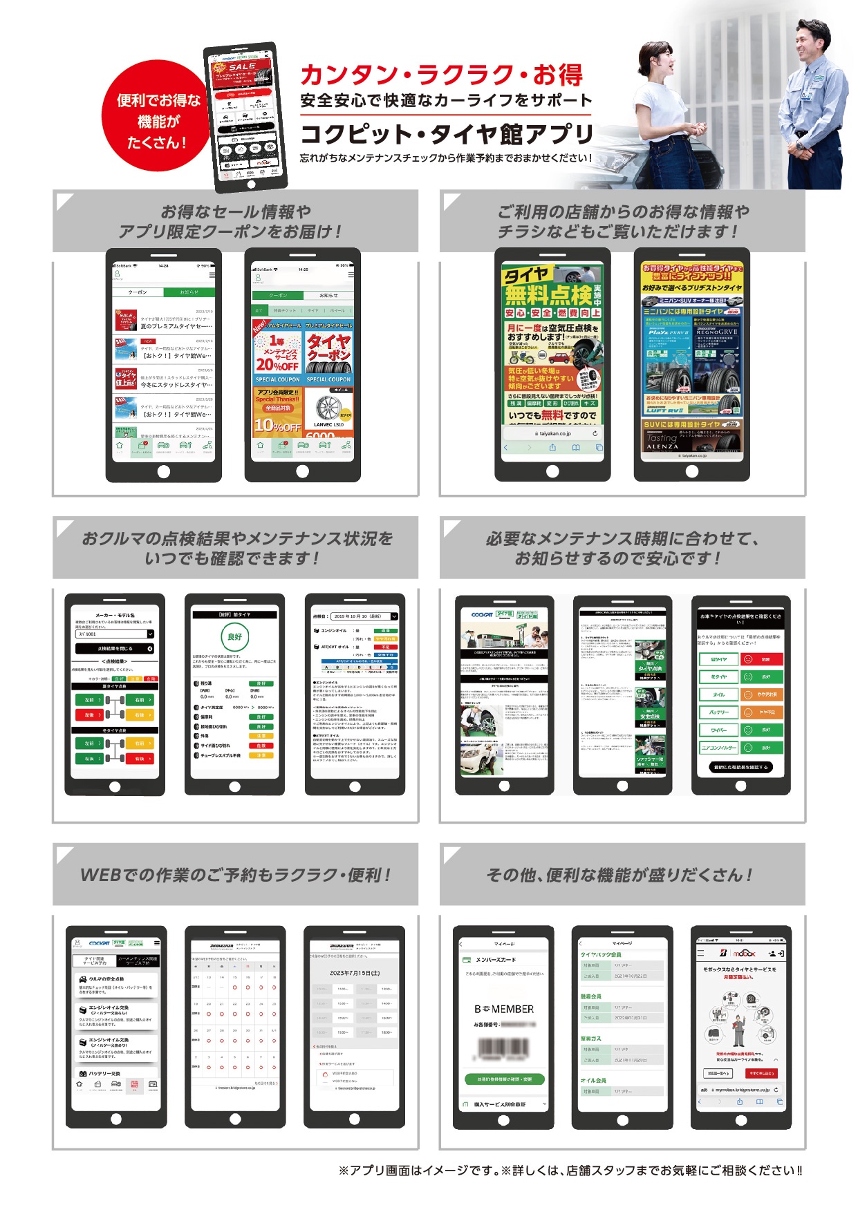 タイヤ館アプリは、入会費も年会費も費用は一切かかりません。