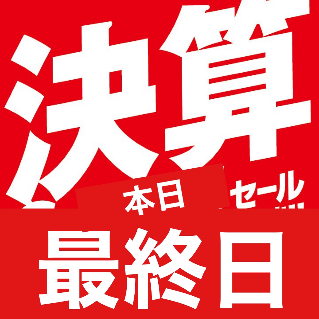決算セールは本日、19:00までの営業となります。お急ぎください!