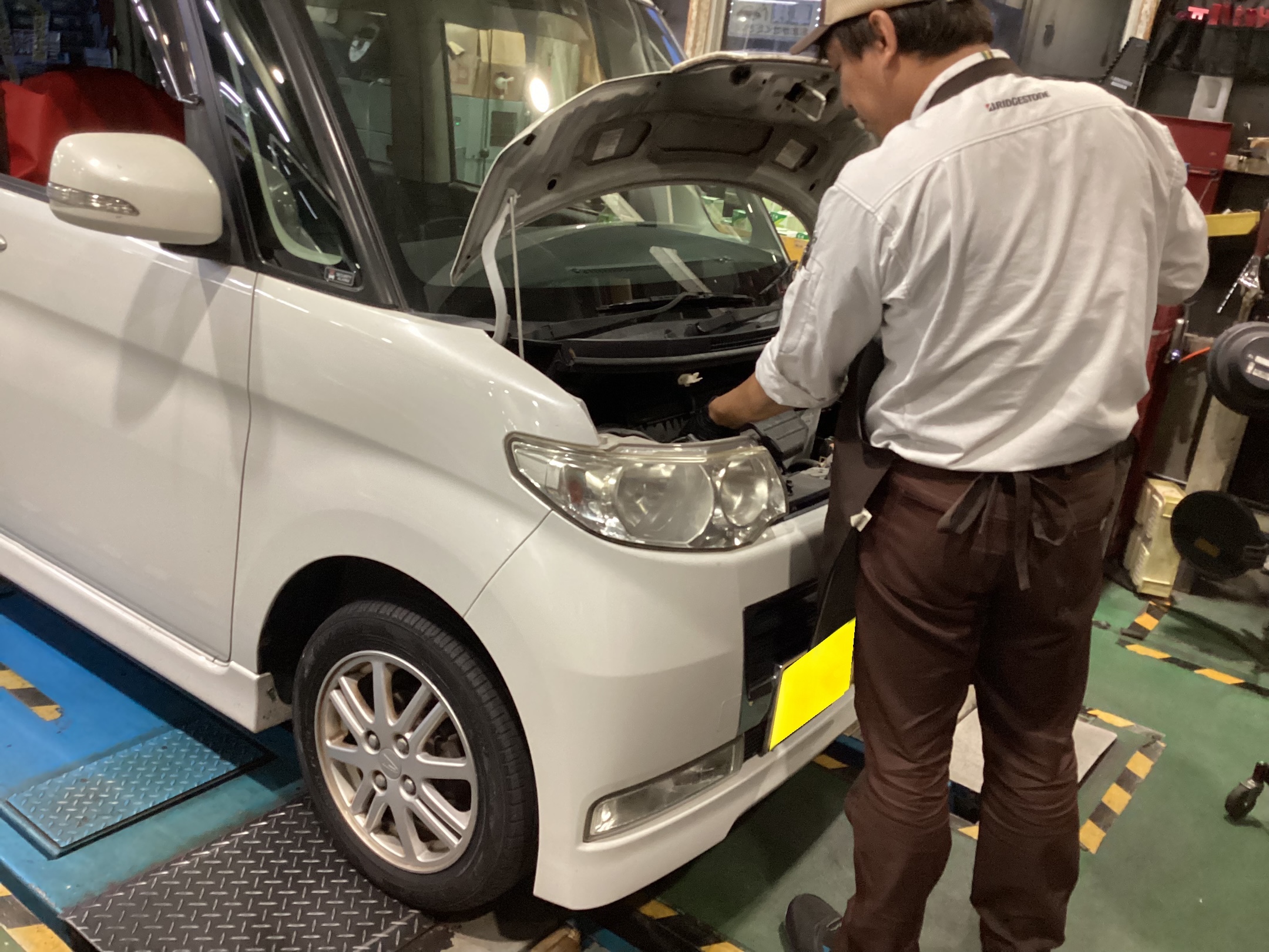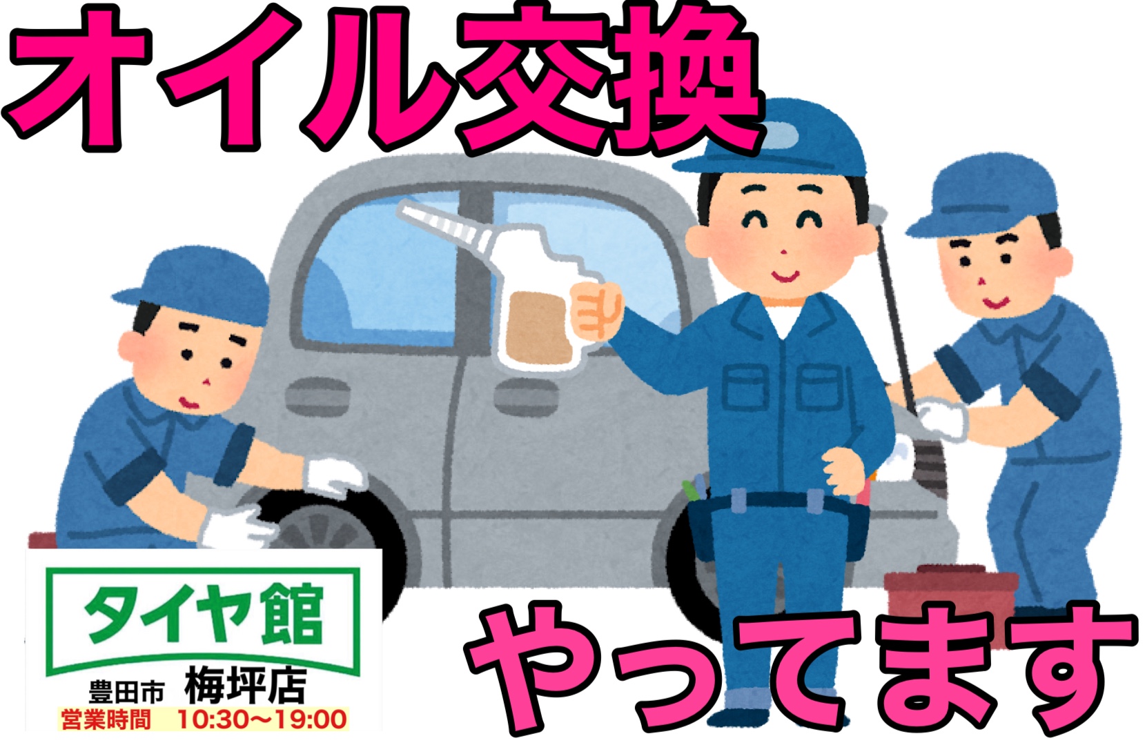 タイヤ館梅坪店では、国産車のエンジンオイル交換の作業もやってます。