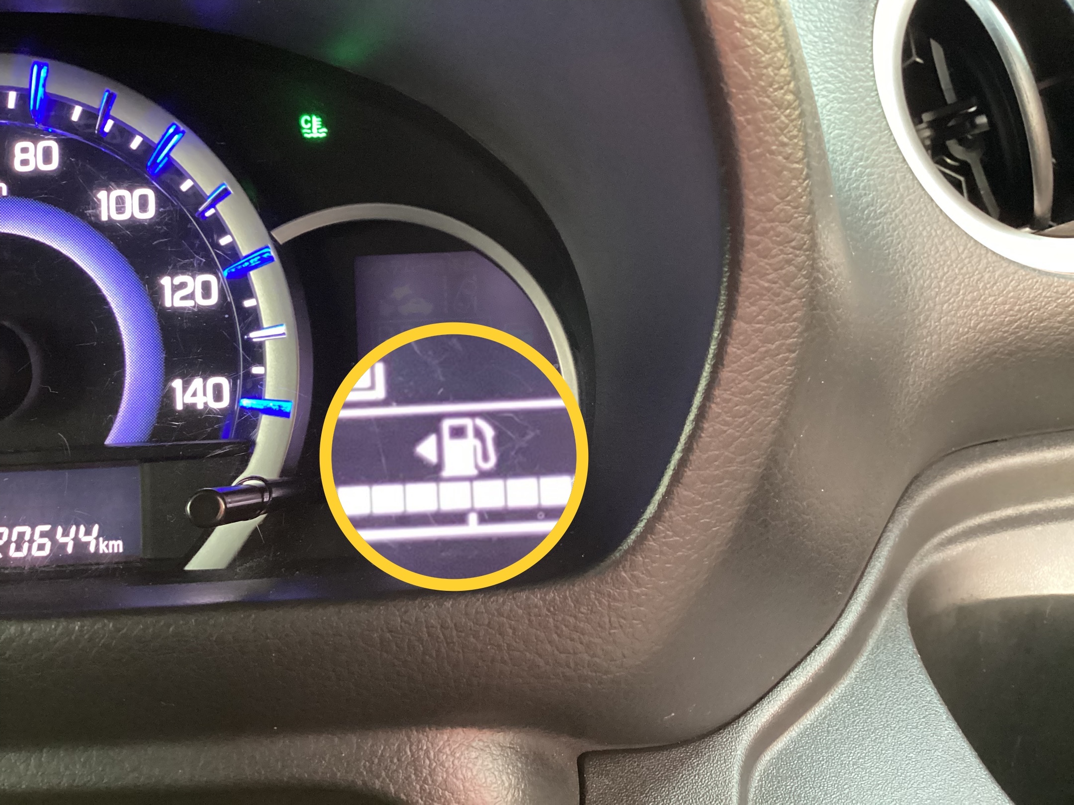 矢印方向にありますので「どっちだったっけ?」と思ったらメーターパネルのガソリン量のところを見てください。(一部車両には、この表示がない場合もあります)