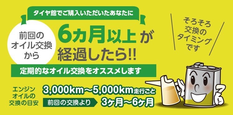 オイル交換の交換サイクルは、3,000〜5,000km、または、3〜6ヶ月。