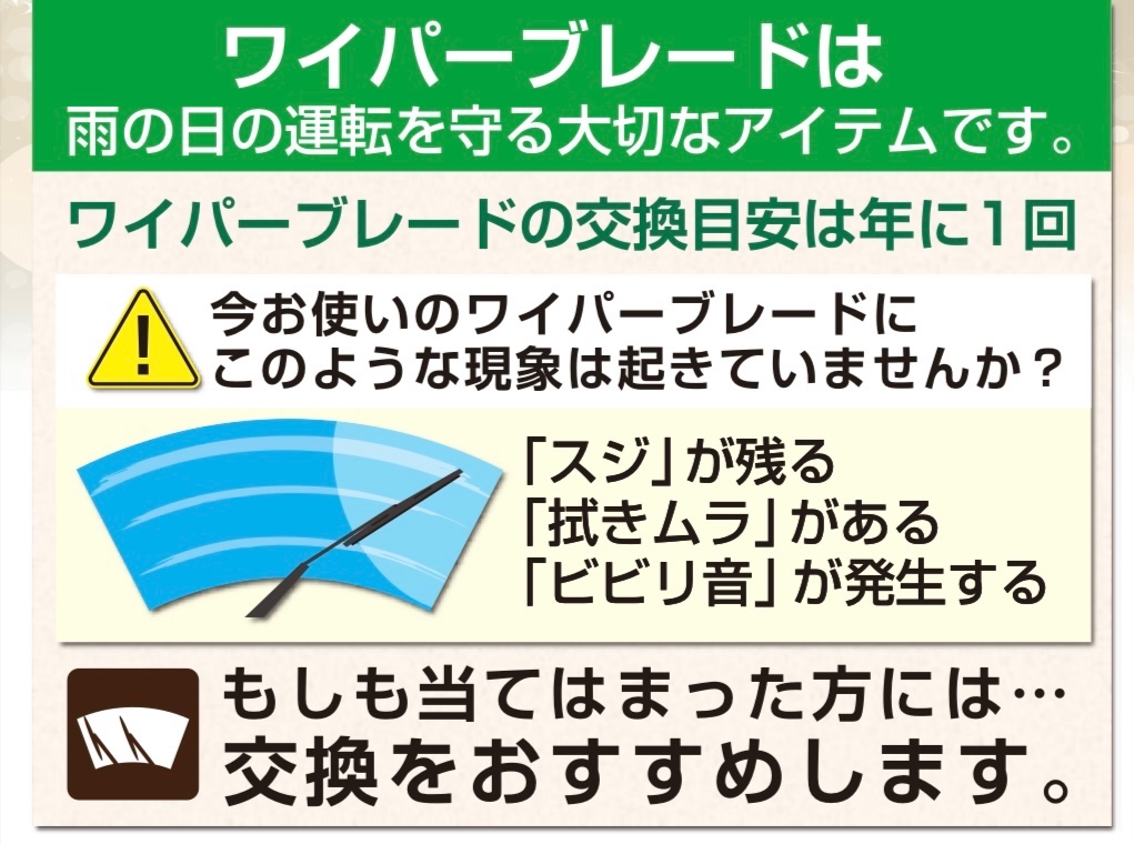 雨天時の必需品「ワイパー」のご案内です。