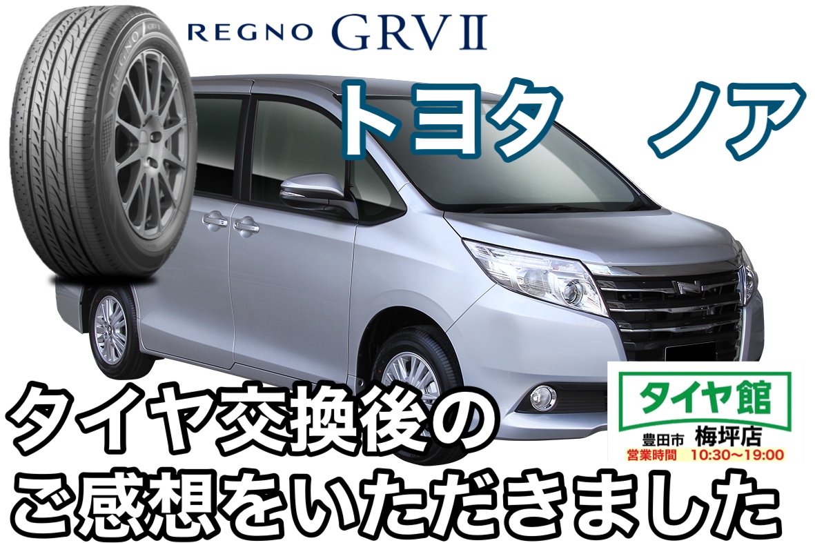 先日、ノアにブリヂストンの「REGNO GRVⅡ」を交換させていただきました。タイヤサイズは、195/65R15。