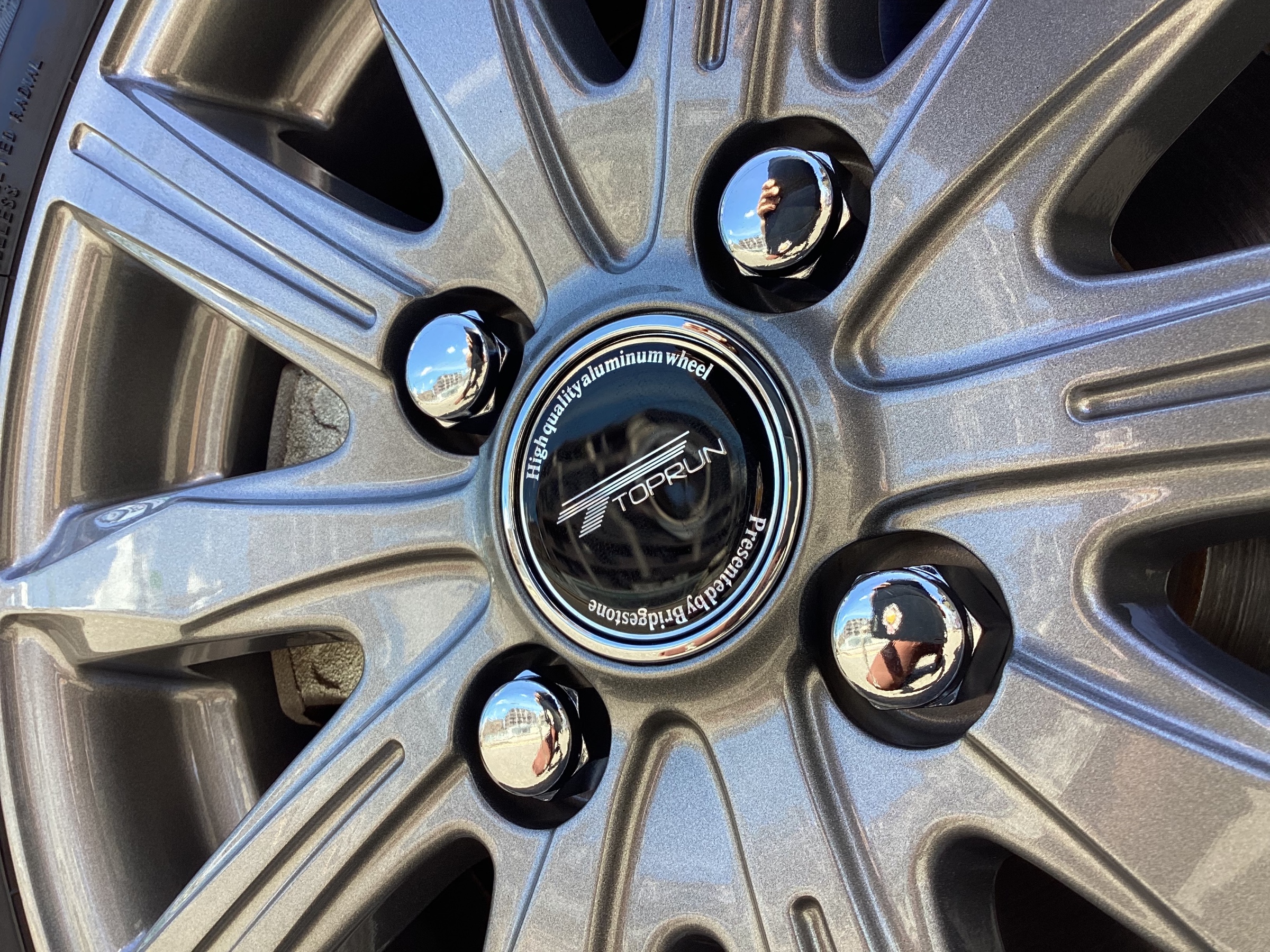 ナットも新品に交換。スチールホイール用貫通タイプのナットから見栄えの良い袋タイプのナットに。