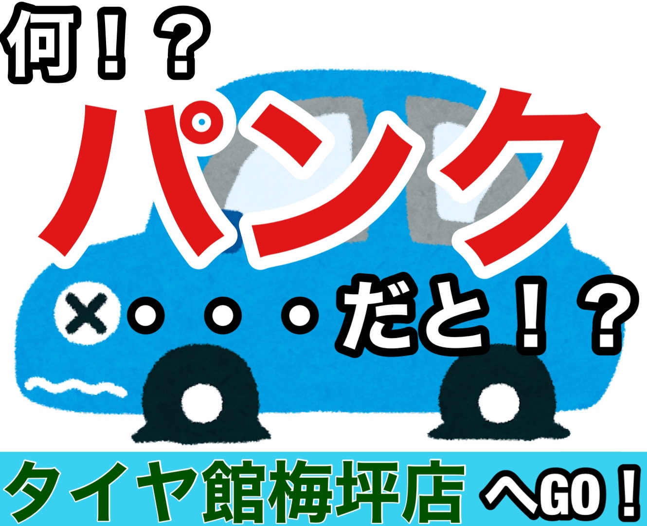タイヤがパンクしたら、タイヤ館梅坪店までぜひどうぞ。
