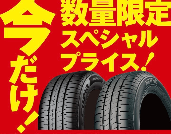 8/1〜8/25の期間でブリヂストンタイヤの「NEWNO(ニューノ)」・「ECOPIA NH200シリーズ(エコピア)」がサイズ&数量限定で特別価格にて販売します。