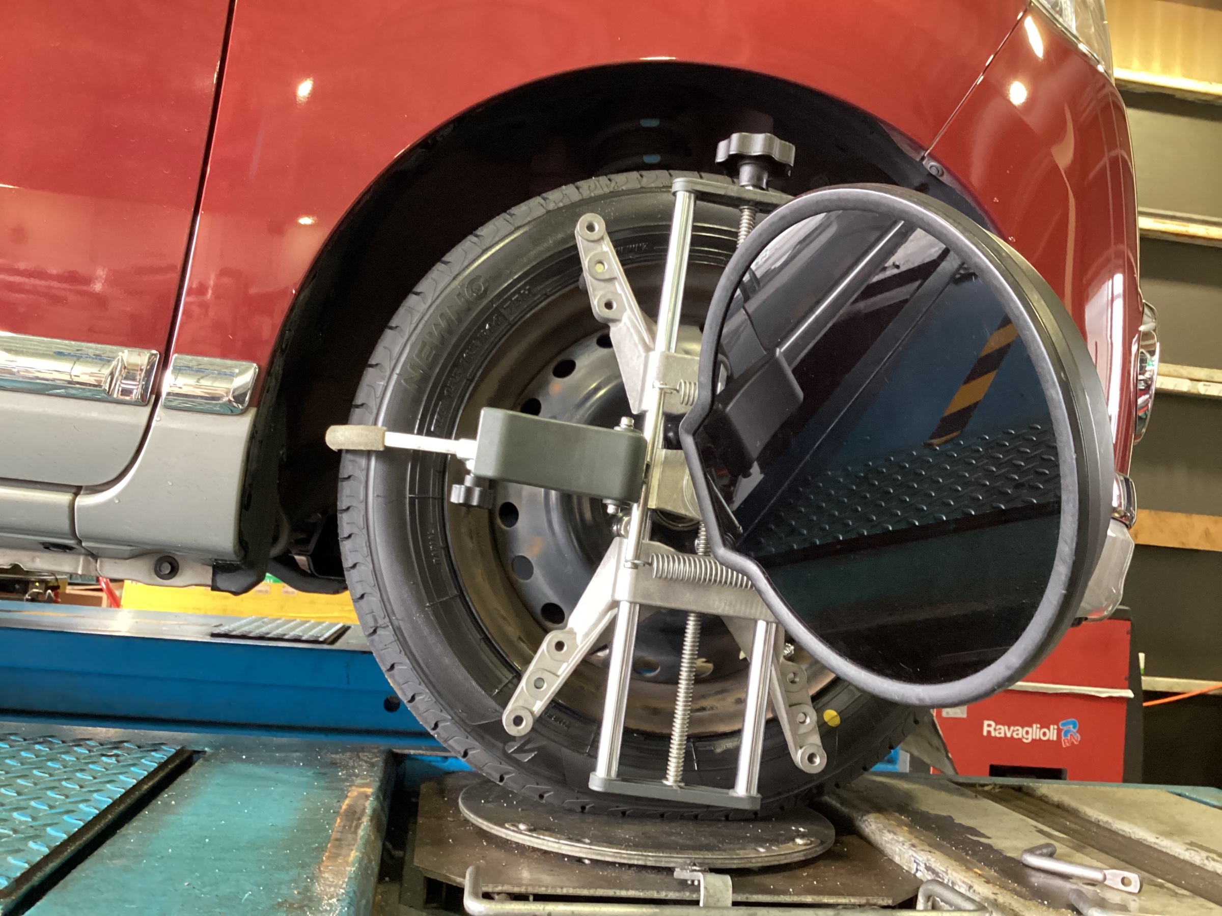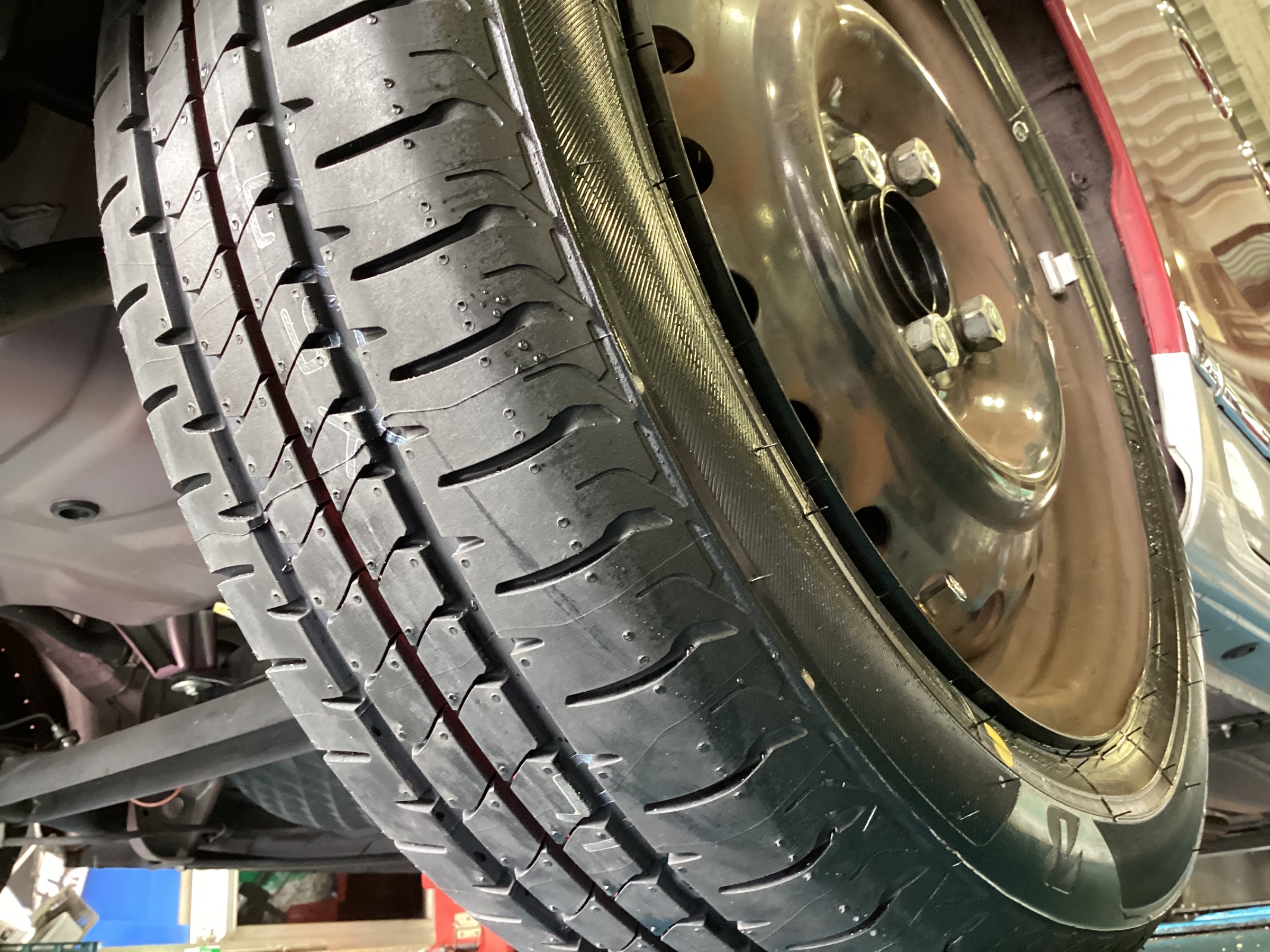 タイヤの寿命を延ばしたり、走行の安定さを向上させたりする作業:「アライメント調整作業」も同時に実施させていただきました。