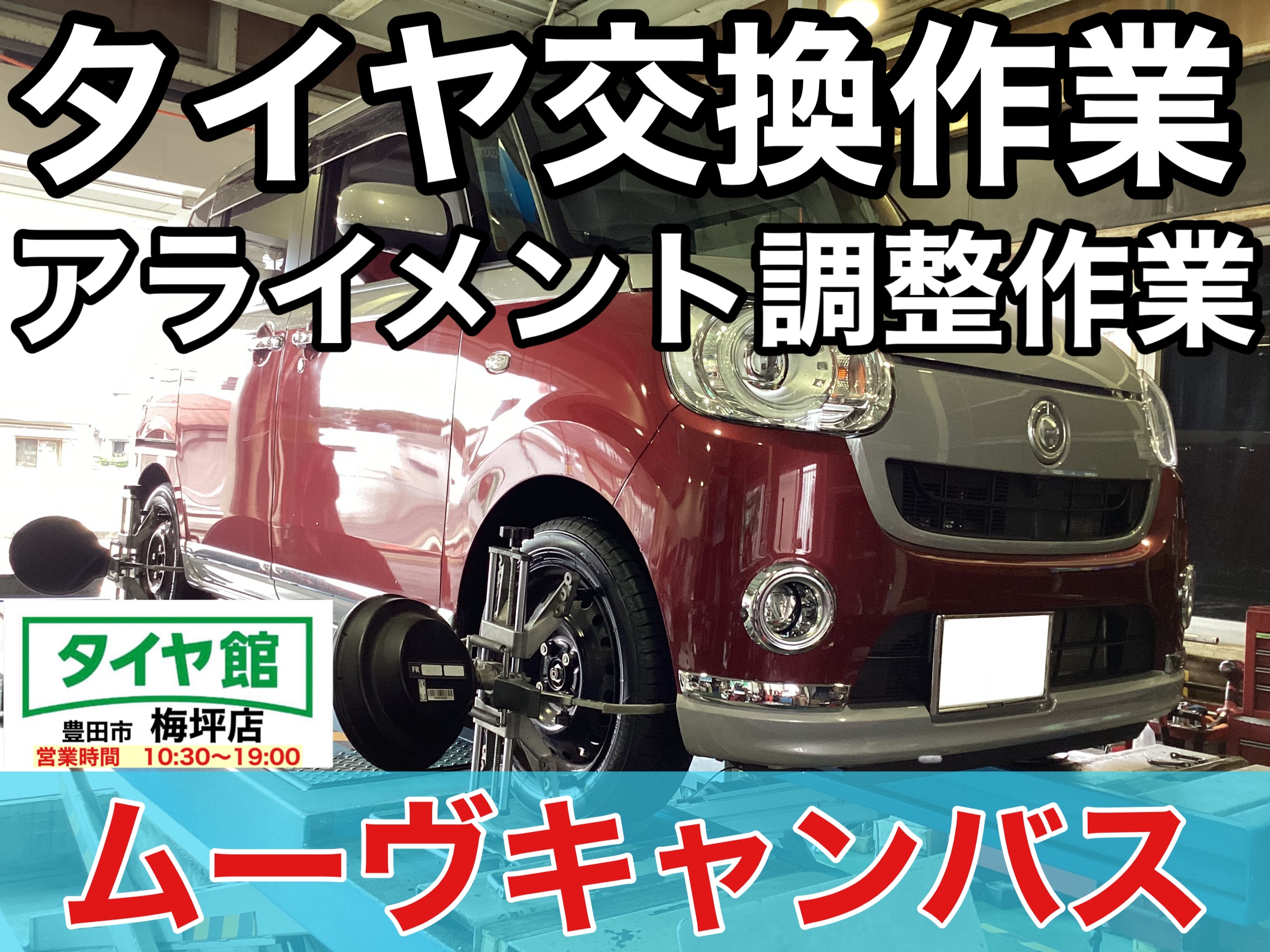 アライメント調整作業を詳しく▶︎タイヤ館公式ホームページへ