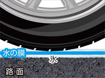 冬道で怖いのがクルマのコントロールが利かなくなる凍結路(アイスバーン)の走行。滑る原因は上記にもあるように凍結路にうっすら広がっている「水」。