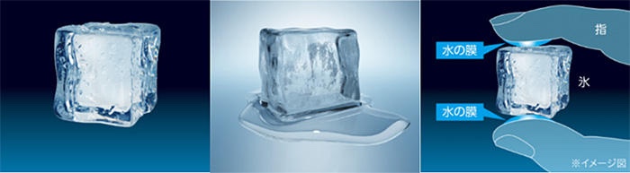 その環境において氷の結晶は大きさを変化させ、結晶が小さくなると摩擦や外気の熱でさらに溶けやすくなり水膜を発生させやすくなるのです。氷が滑る、その理由は氷そのものではなく、氷との間に発生する水膜が原因だったのです。