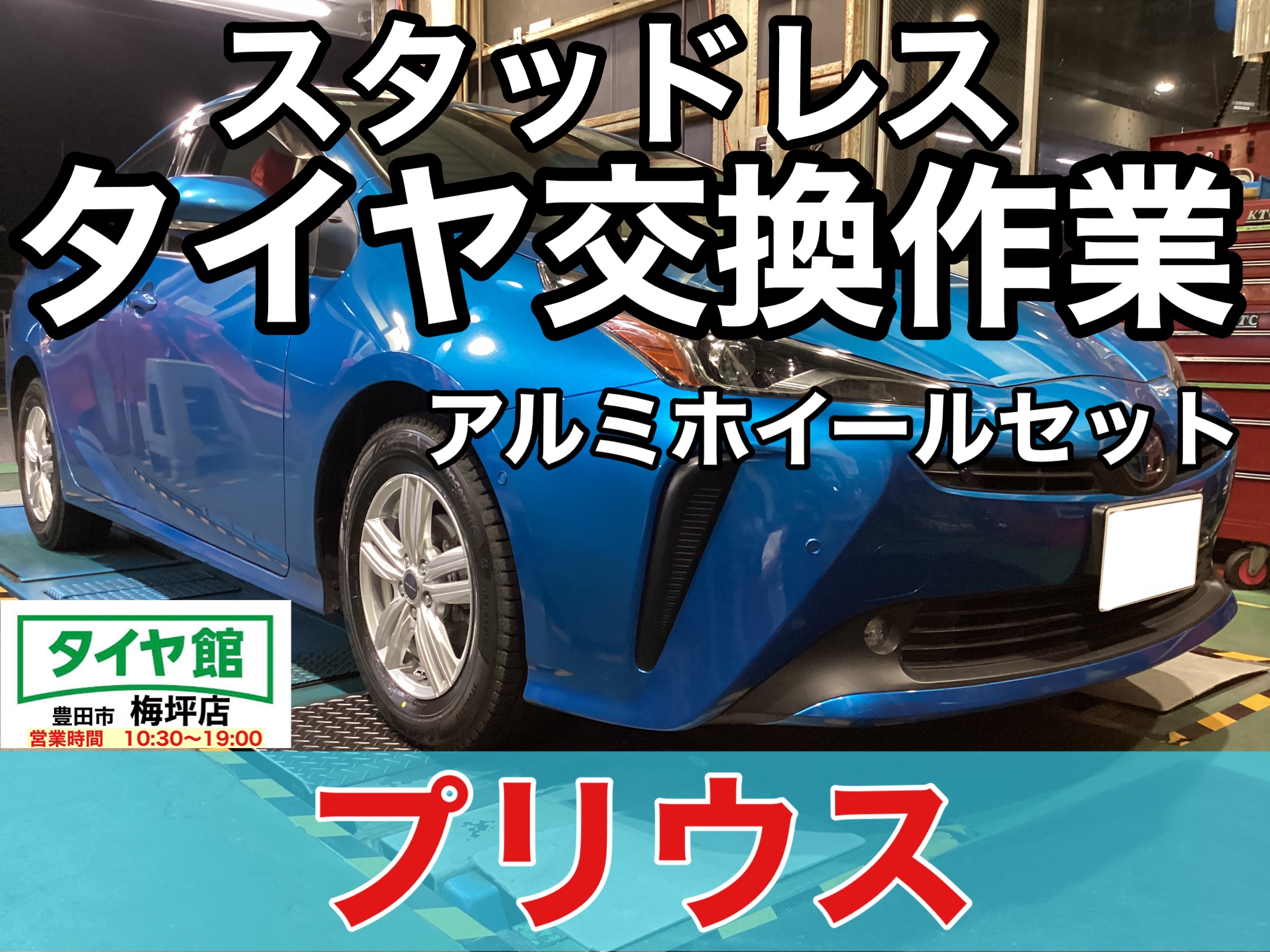 プリウスのスタッドレスタイヤホイールセットの装着作業です。