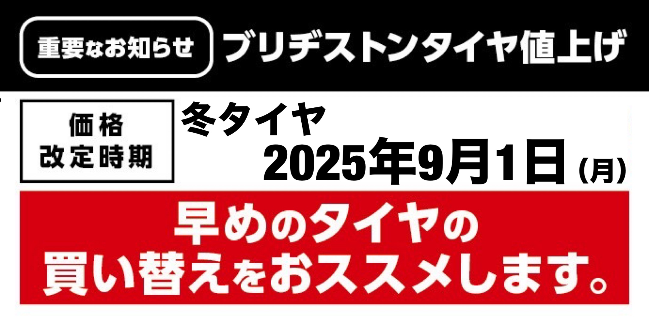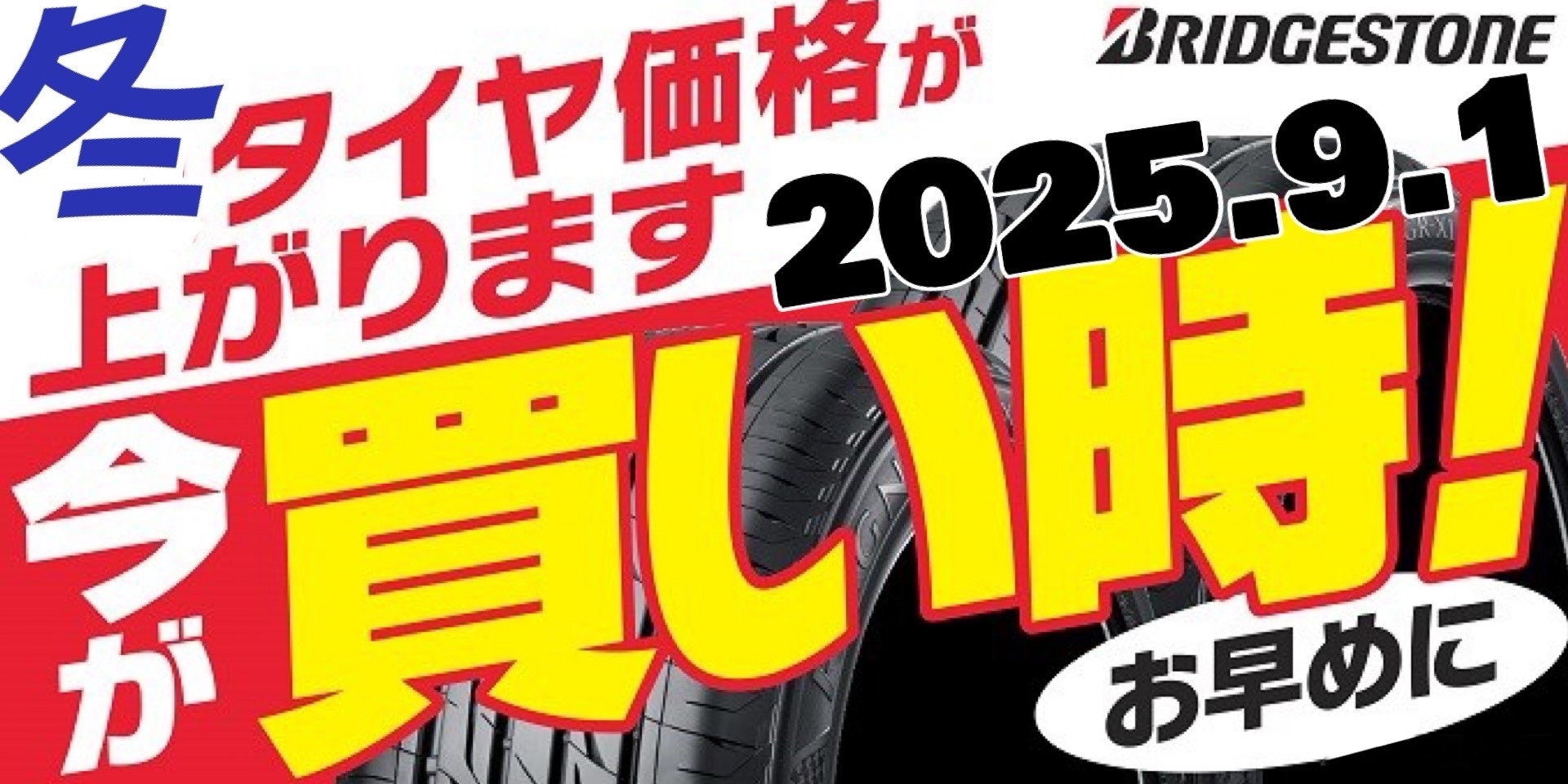 ブリヂストンの冬用タイヤが2025年9月1日に6〜8%値上がりします。