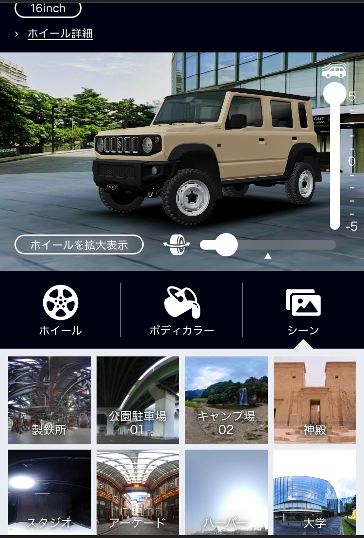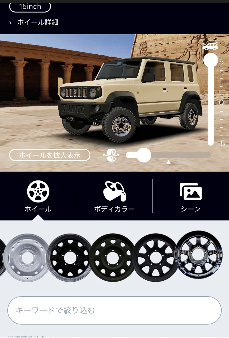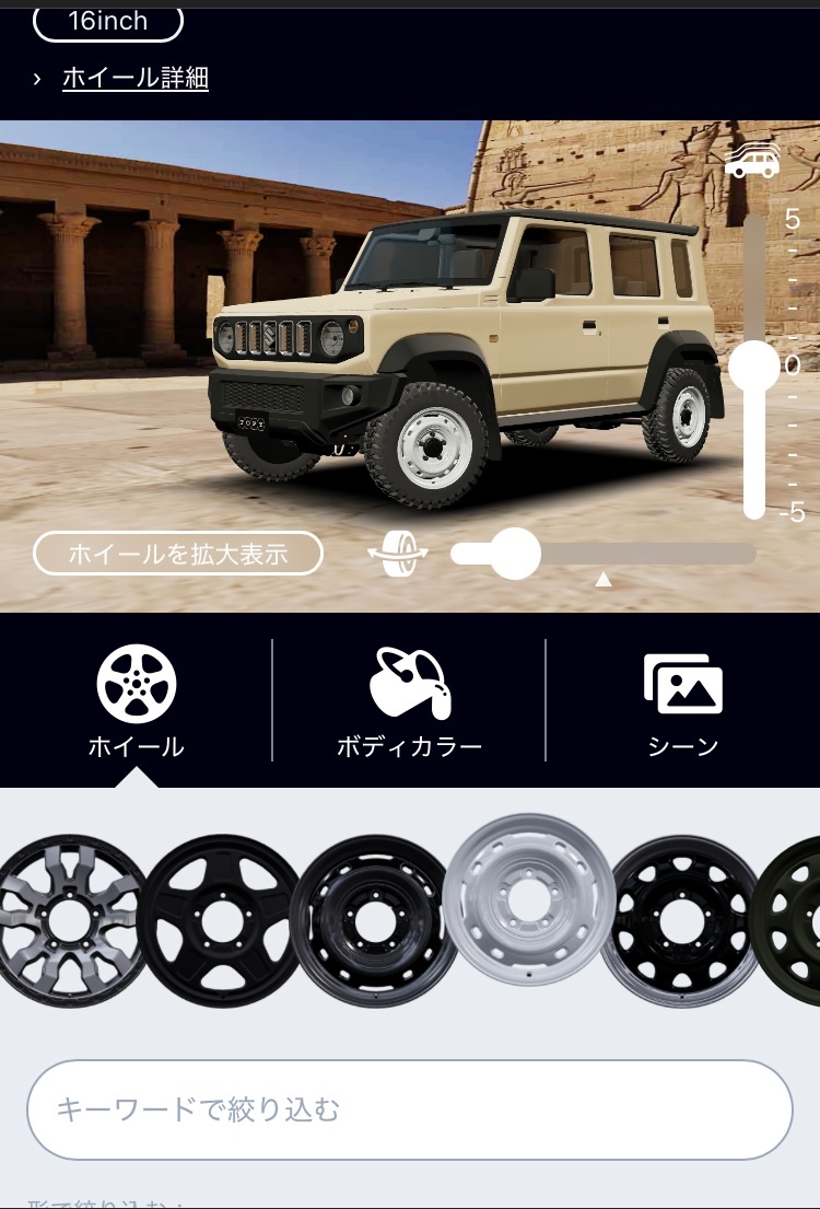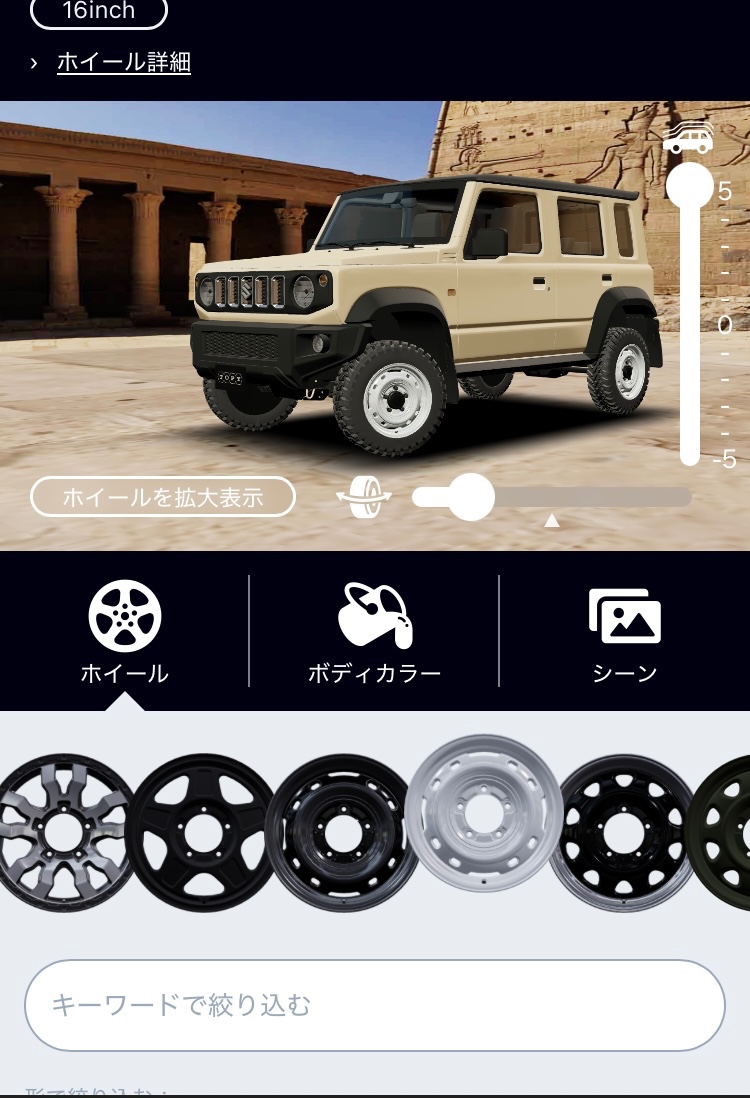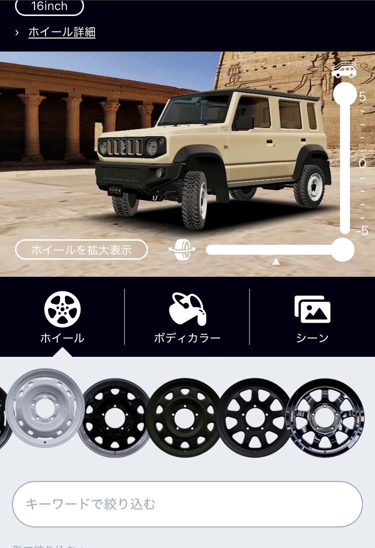 ここで一例として、話題のJIMNY NOMADE(ジムニーノマド)の3Dシュミレーター画像をご案内します。