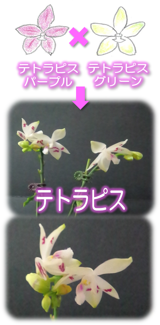 上のイラストの花を親に持つ株が