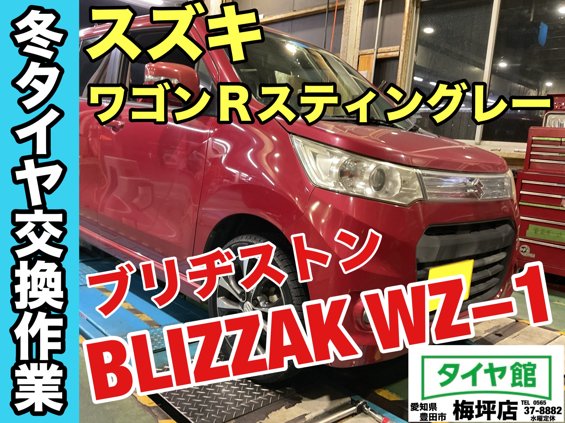 【作業事例】「スズキ・ワゴンRスティングレー」スタッドレスタイヤ交換作業(ブリヂストン BLIZZAK WZ−1)