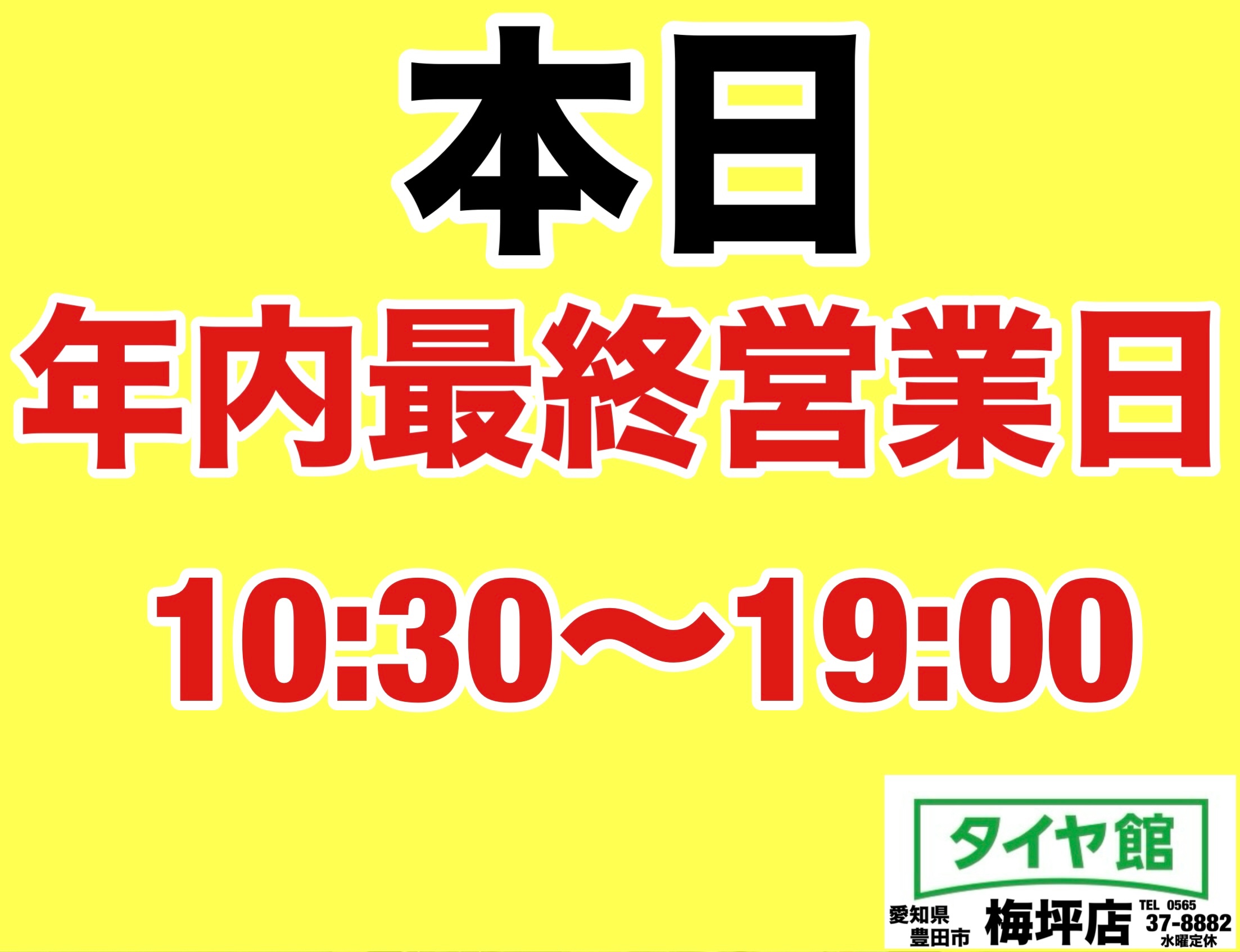 いつもありがとうございます。 豊田市京町のタイヤ館梅坪店です。 タイヤ館梅坪店は、2025年の営業を終了させていただきました。 大変多くのお客様にご利用いただきました。誠にありがとうございました。 2026年は、1月6日10:30より営業致します。 2026年も宜しくお願い致します。