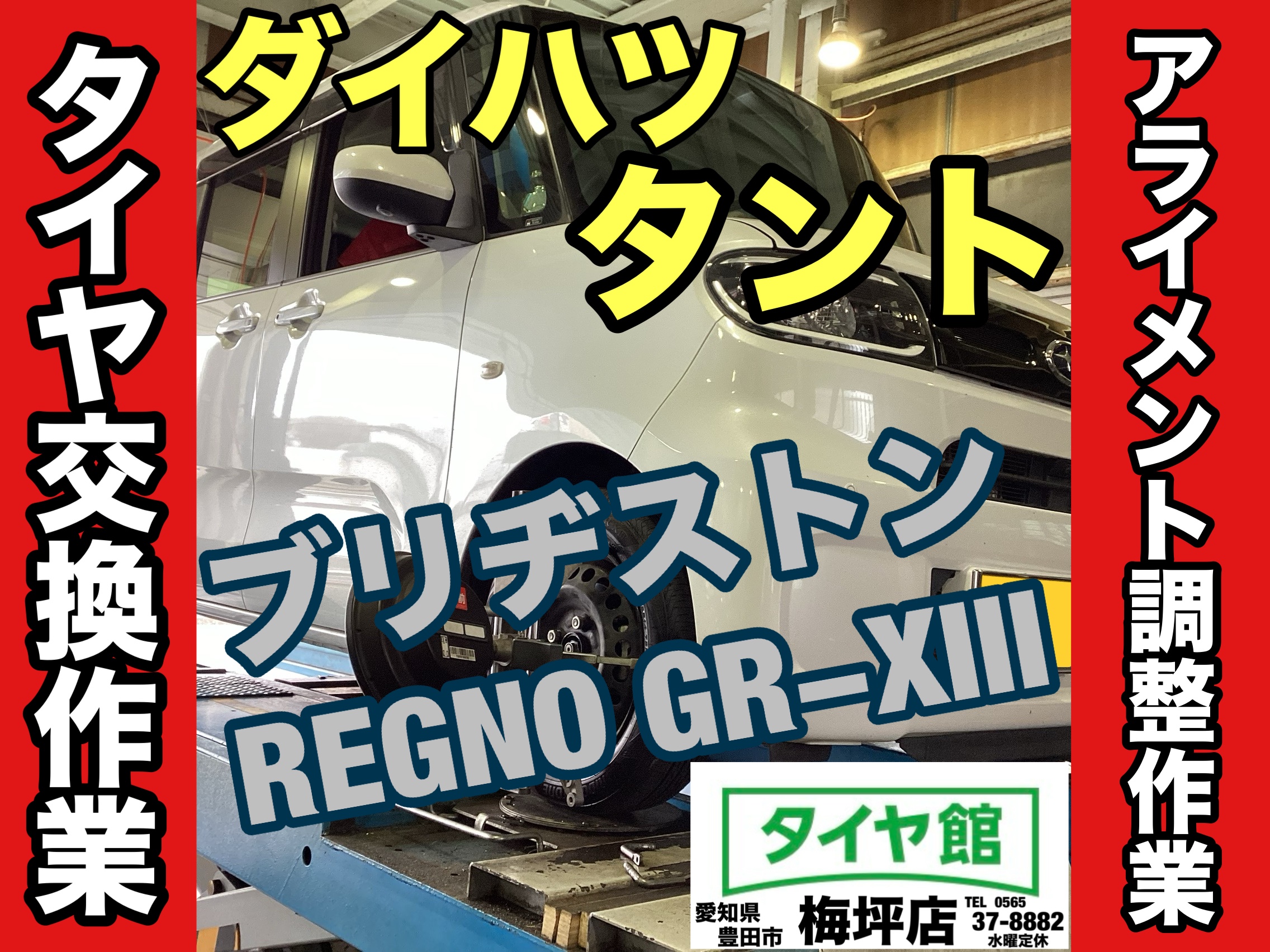 【作業事例】「ダイハツ・タント」夏用タイヤ交換作業(ブリヂストン REGNO GR−XⅢ)・アライメント調整作業