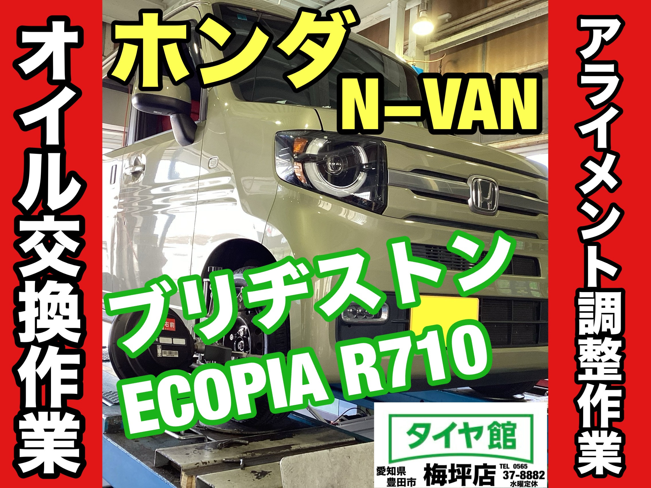 【作業事例】「ホンダ・N−VAN」タイヤ交換作業(ブリヂストン ECOPIA R710)・アライメント調整作業