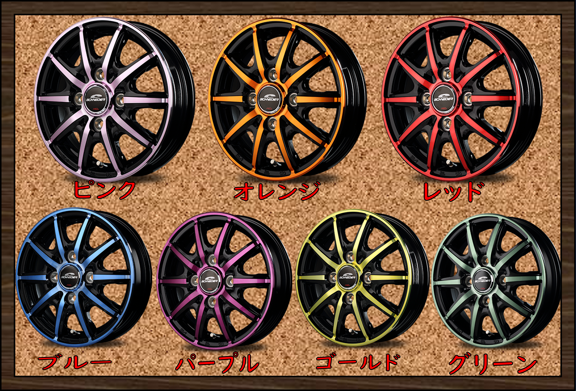 最近はいろんな色の軽トラ、軽バン見ますがこのホイールはカラーバリエーションも豊富です。