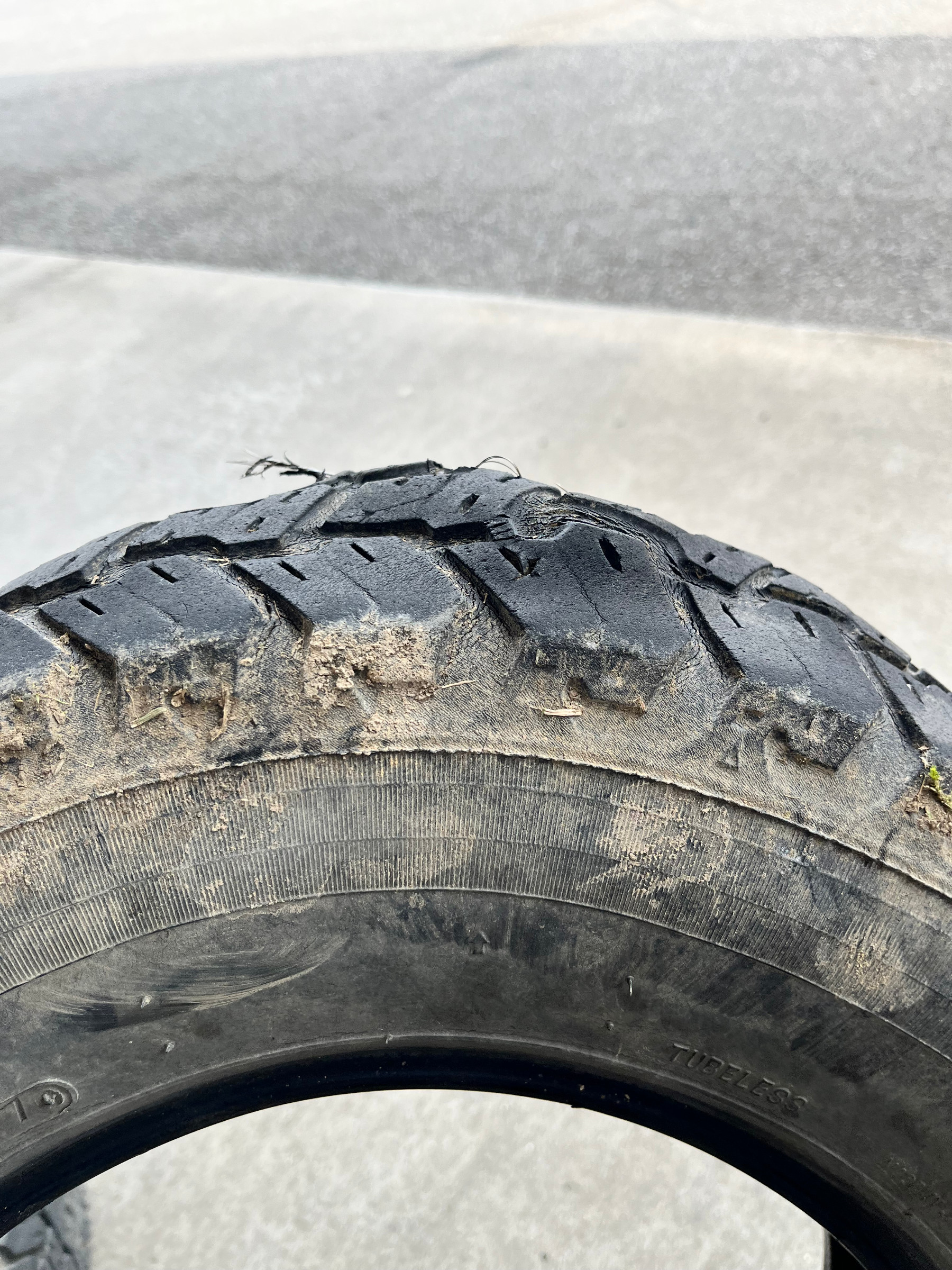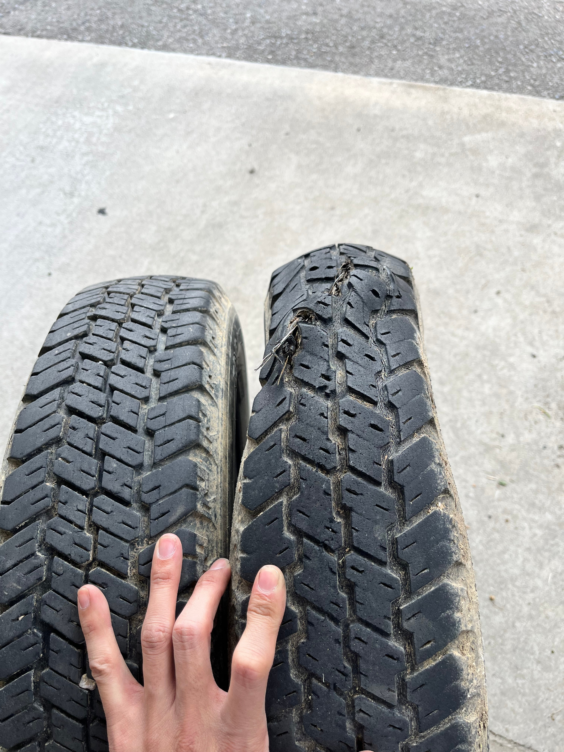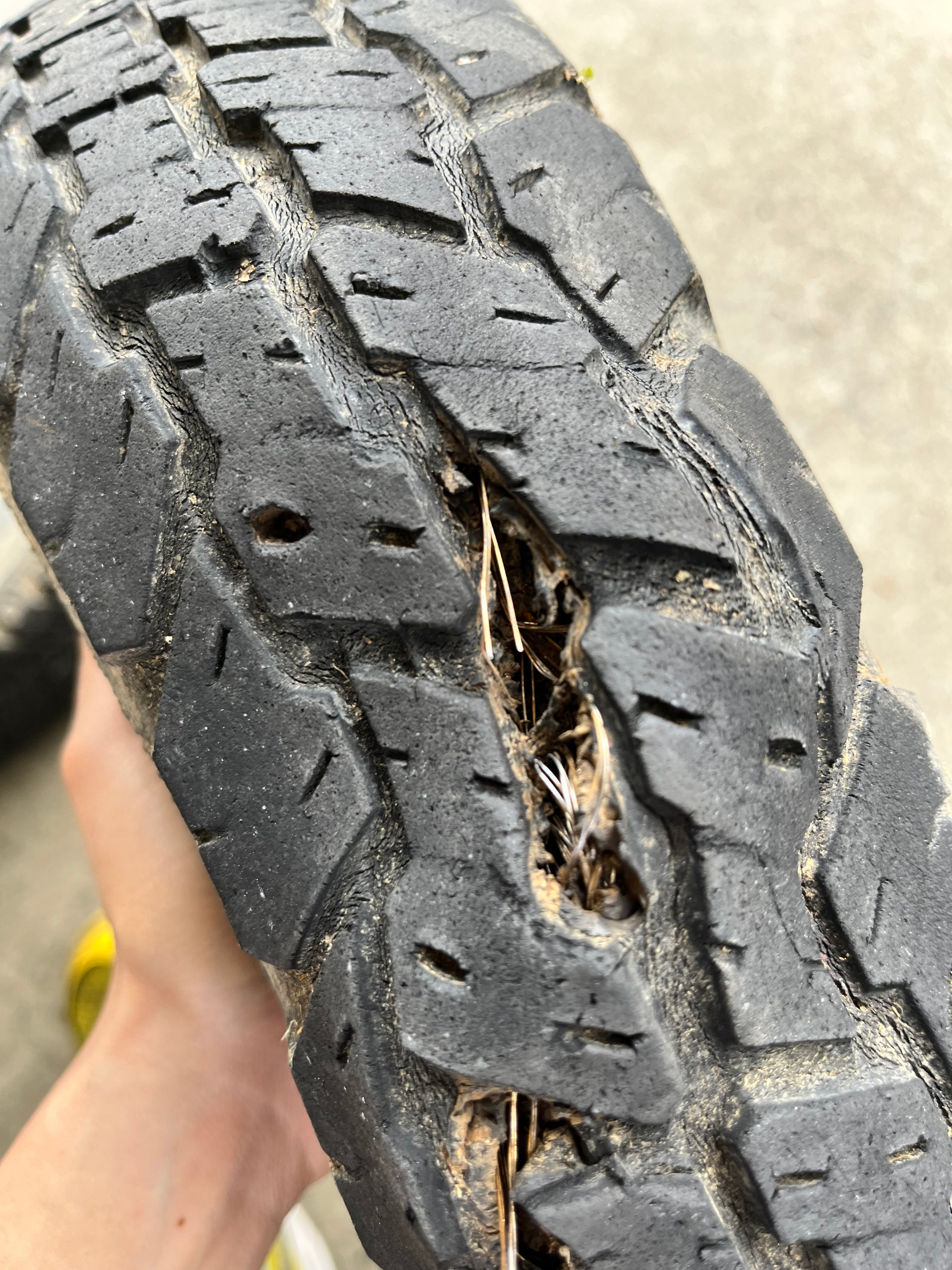 中のワイヤーが見えていて、タイヤが変形していました!!
