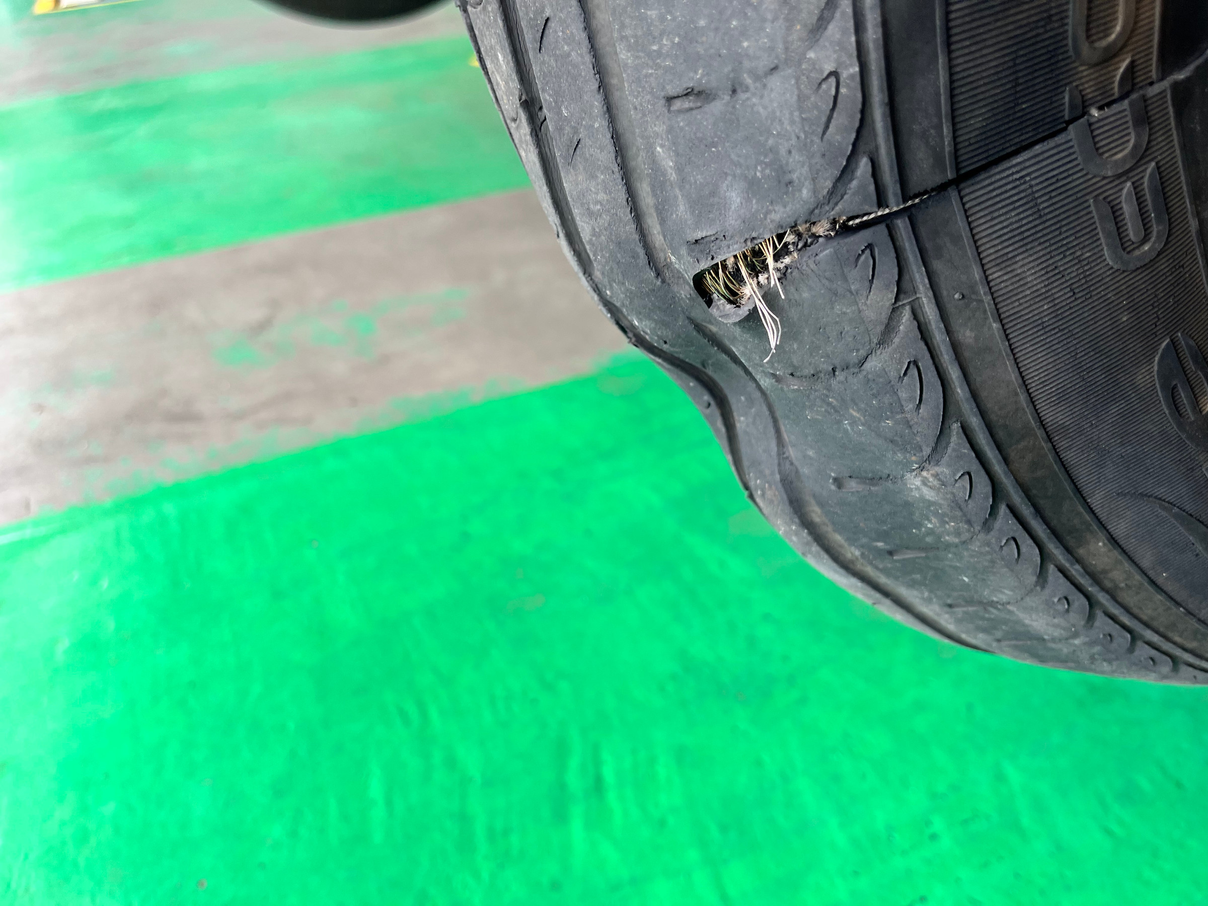 こうなってしまっては交換が必要ですので、タイヤ交換いたしました!