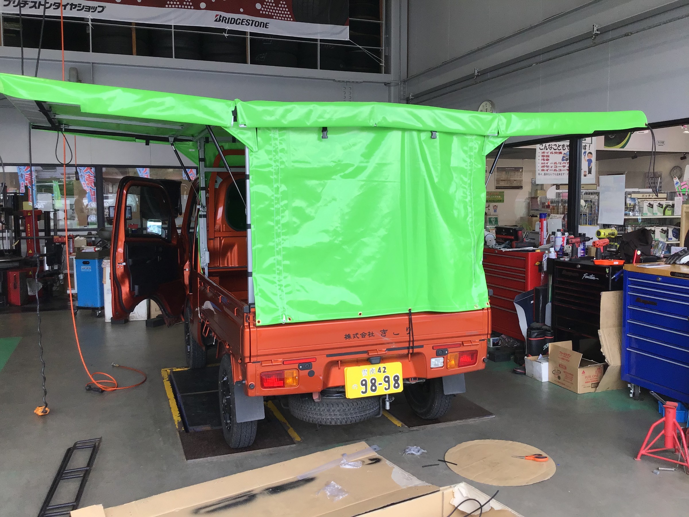 コチラの車両ですが幌(ホロ)の取付けでお預かりいたしました。