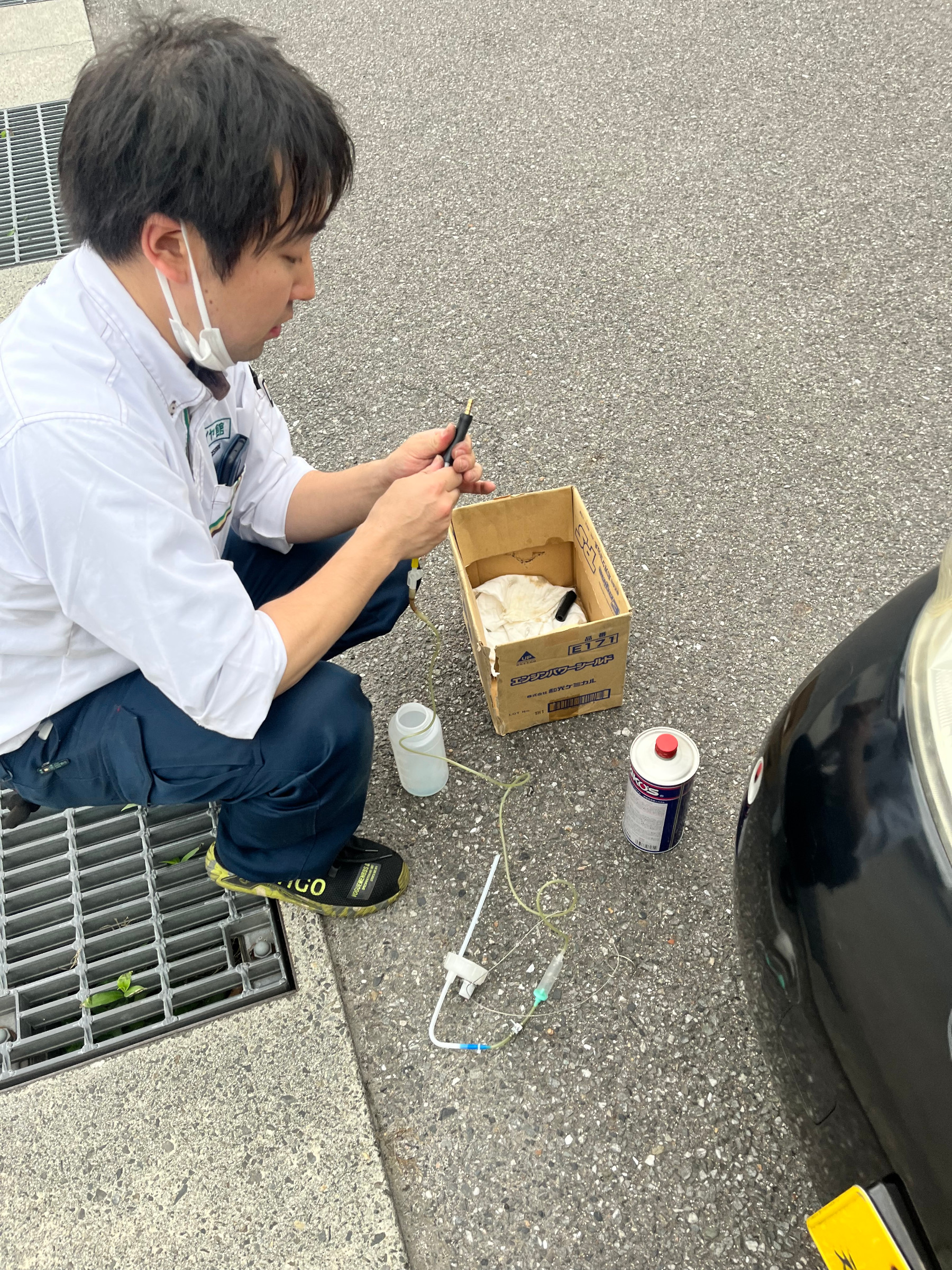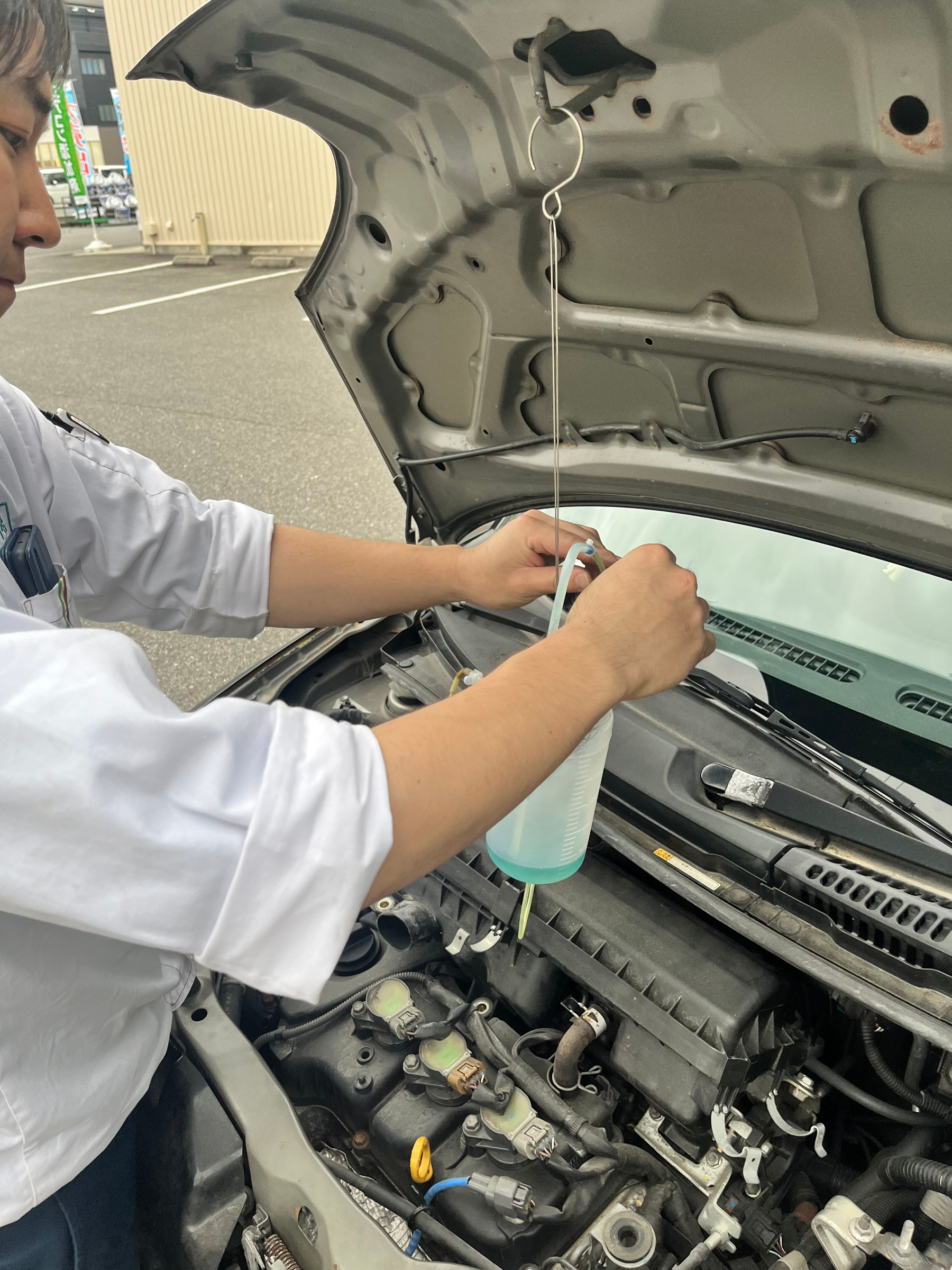 エンジンの中に特殊な薬剤を入れて、キレイにしていきます。