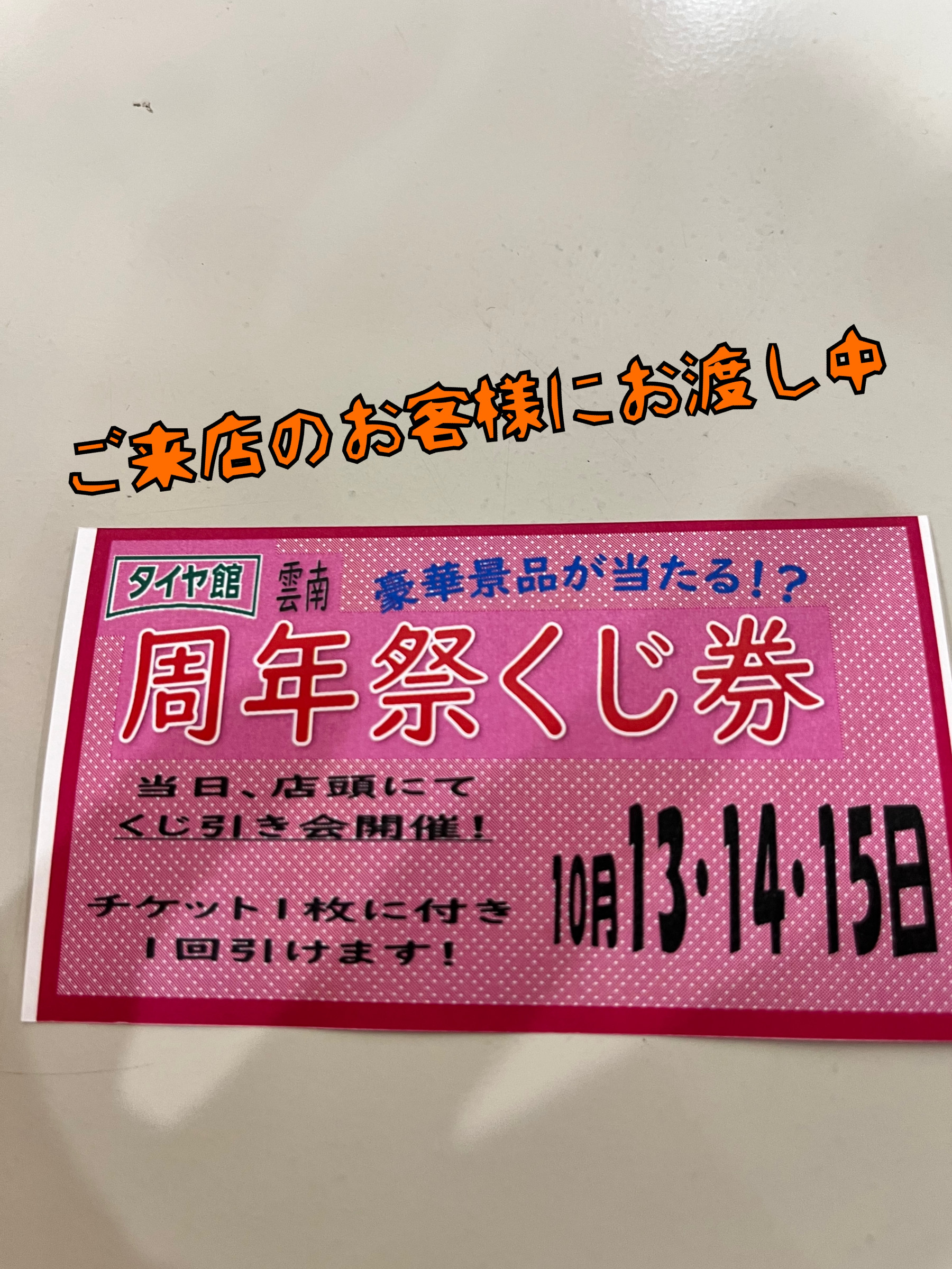 周年祭までにご来店のお客様に只今くじびき抽選券をお渡しています☆