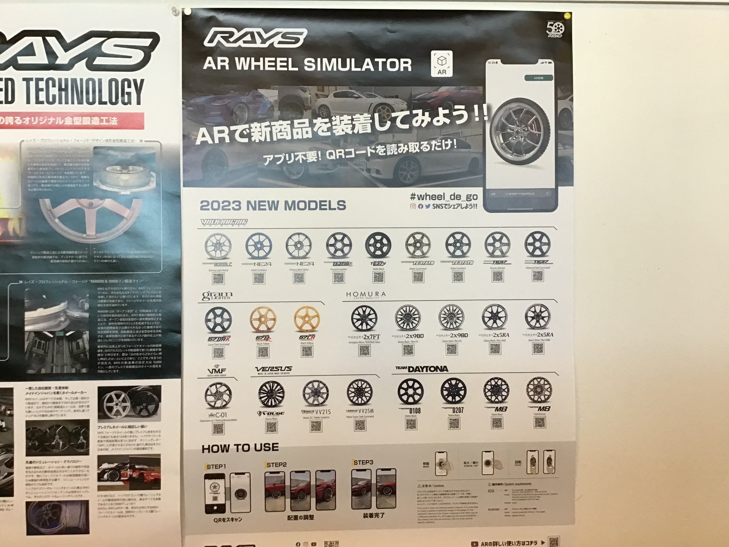 このポスターは待合コーナーとホイールコーナーに貼ってあるのですが、実はこのポスターのホイール下についているQRを読み取ることで「AR」をつかって仮当てが出来ちゃうんです(◎_◎;)