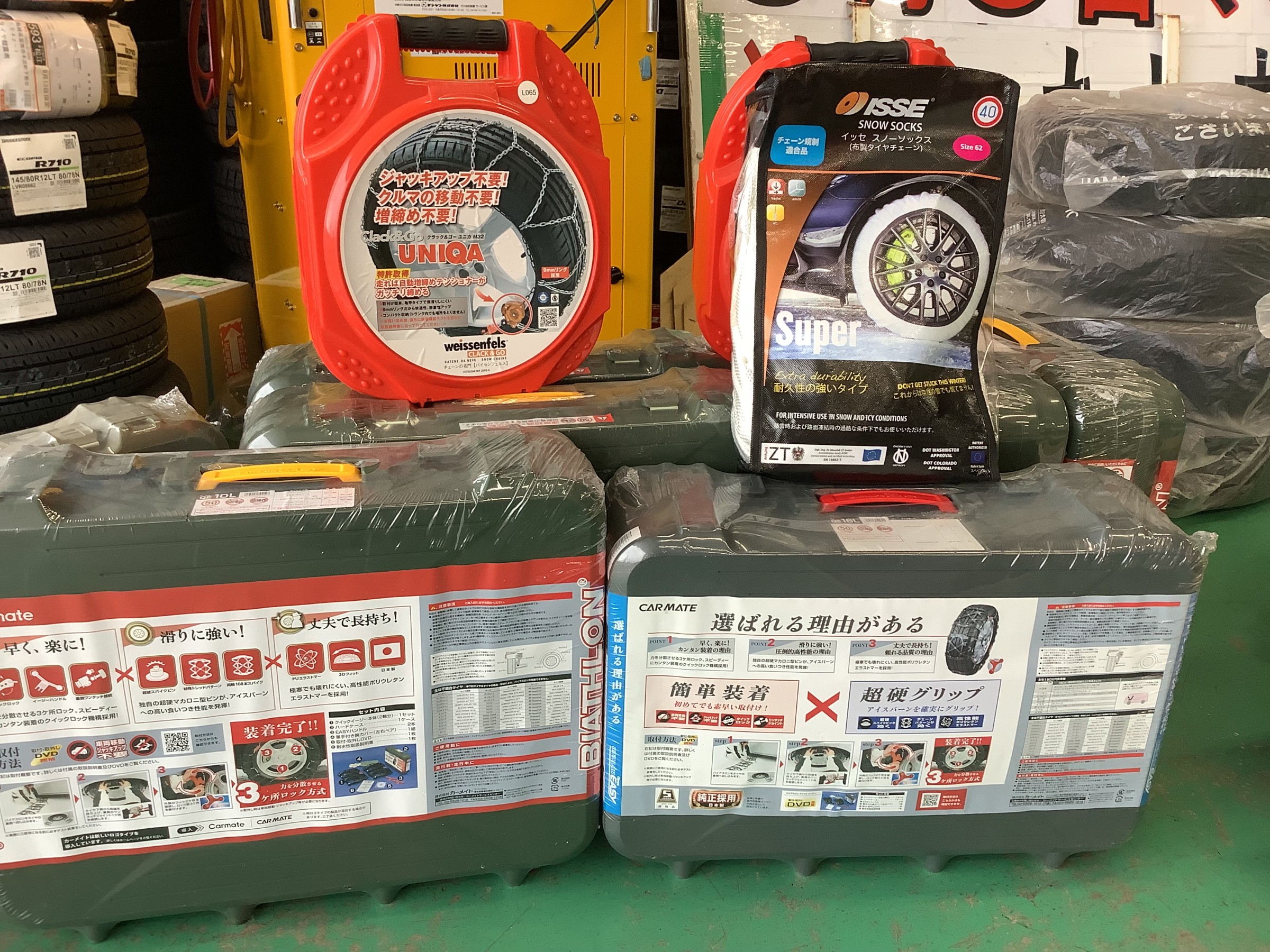 冬タイヤやチェーンも少しずつ展示をしていっております。